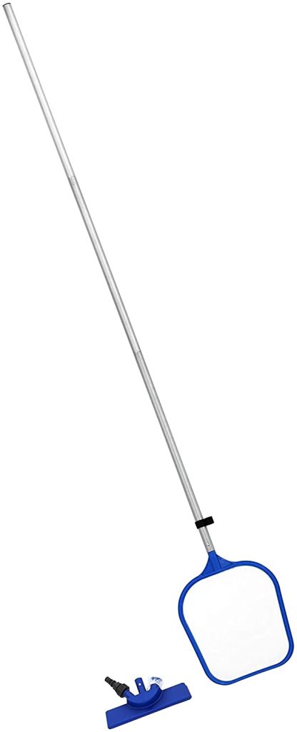 80in Swimming Pool Maintenance Kit offers a simple solution to cleaning and maintaining an 8ft to 12ft Steel Frame or Fast Set pool. It’s absolutely perfect for pool owners who have to squirm around in filthy water, using a sponge and bag to clear debris and scour grime. The swimming pool cleaning equipment consists of an 80in (2.03m) aluminium pole and an interchangeable vacuum and skimmer head. No tools are required to set up the swimming pool skimmer and vacuum; they simply connect to the end of the pole. The length of the pole has been custom-designed for 8ft to 12ft swimming pools, allowing all areas to be cleaned without the strain or awkwardness of a larger or smaller model. Using the swimming pool net skimmer couldn’t be simpler. Once the head has been attached to the aluminium pole it’s a simple case of swooping down into the water and scooping up loose debris such as dead insects, animal faeces and rotting leaves.