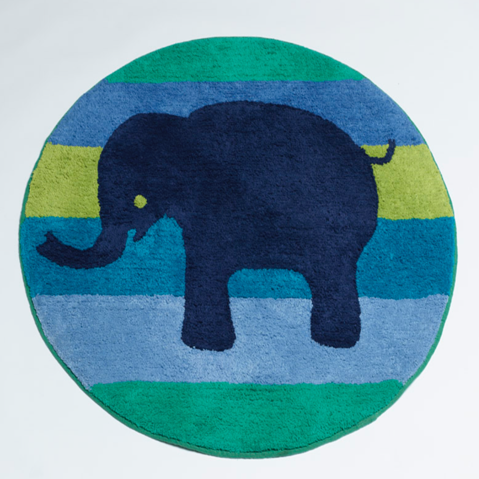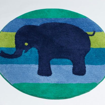A super cute floor rug featuring wide stripes & an elephant.