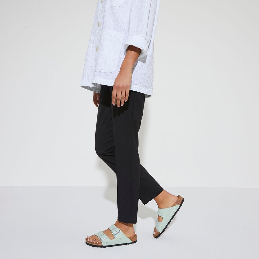 - Contoured cork-latex footbed creates custom support with wear