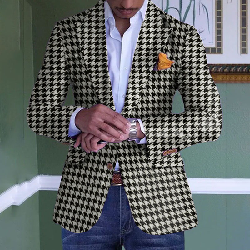 Business Lapel Collar Houndstooth Dots Pattern Long Sleeve Blazer