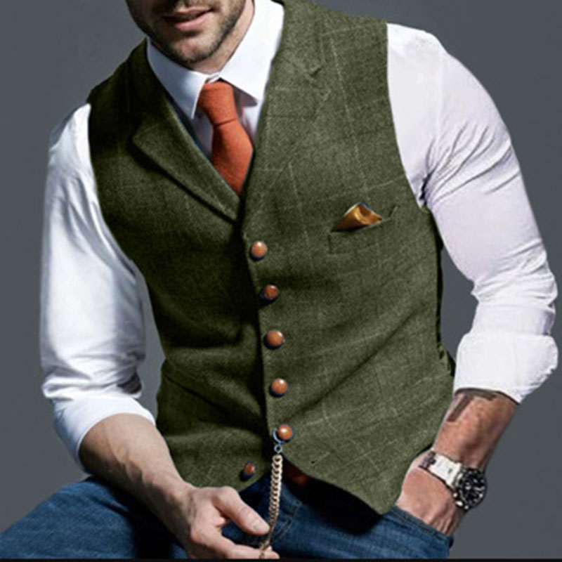 Business Lattice Notch Lapel Single Breasted Blazer Vest