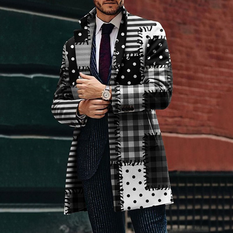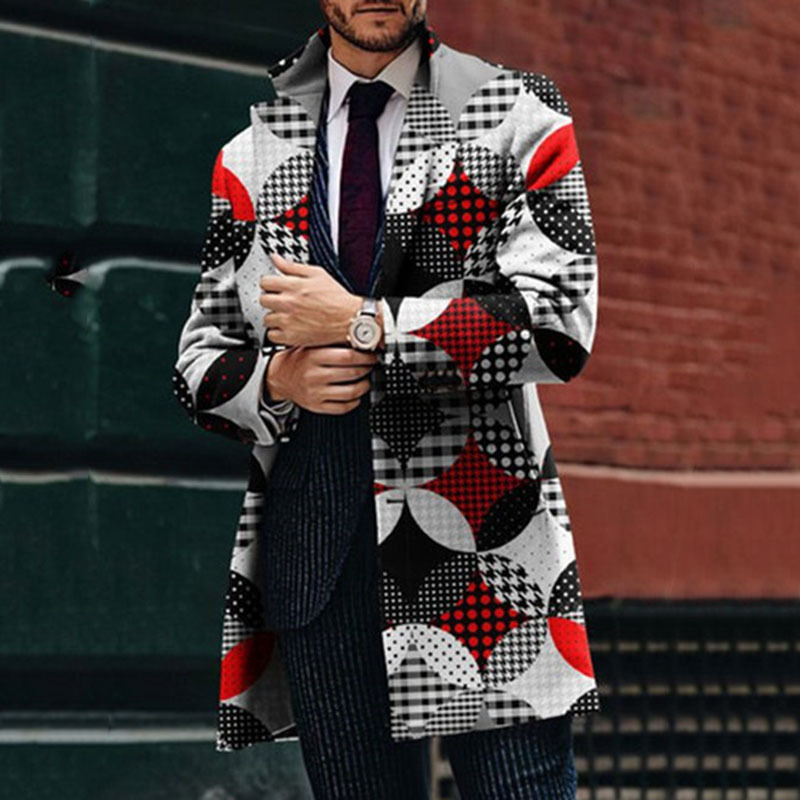 Casual Plaid Graphic Geo Colorblock Stand Collar Pocket Long Sleeve Overcoat