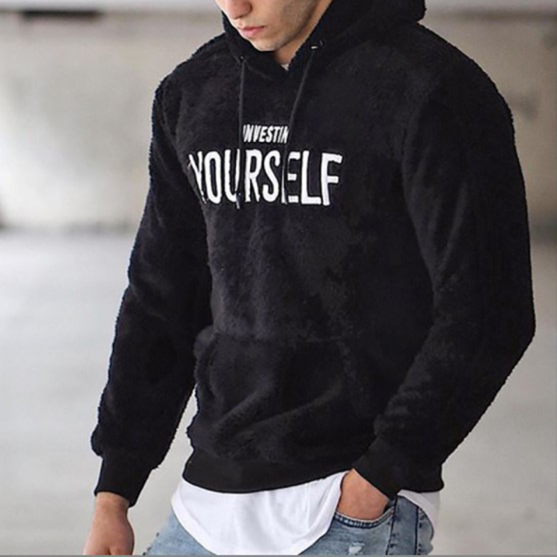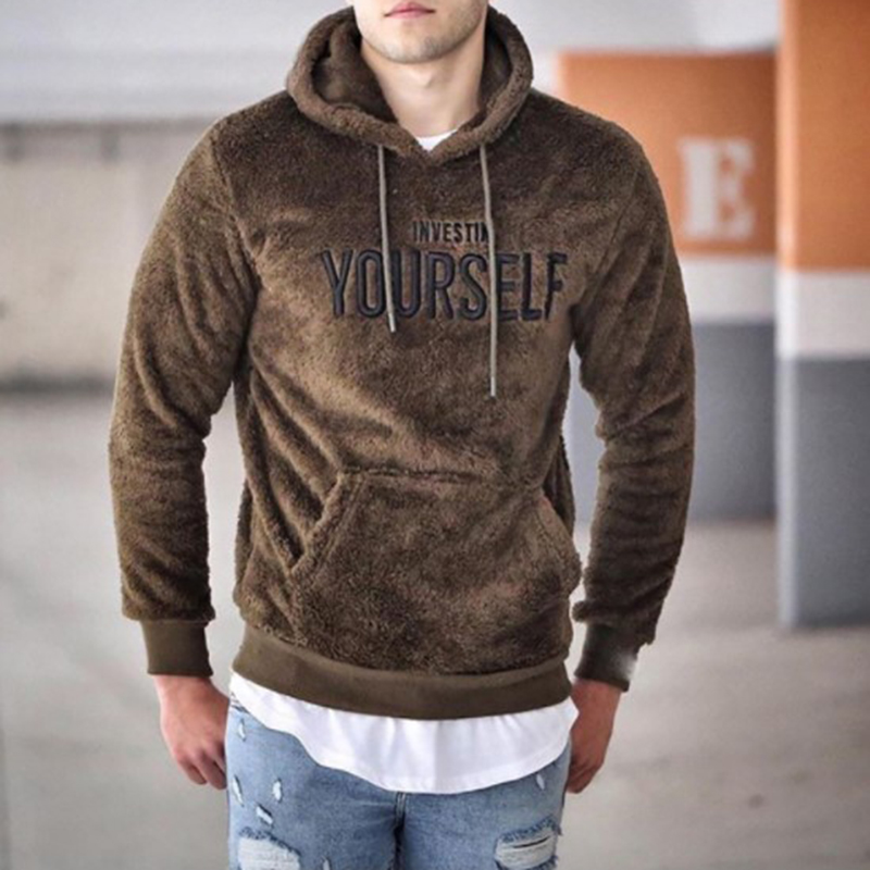Men's Casual Pocket Letter Embroidered Fleece Pullover Hoodie