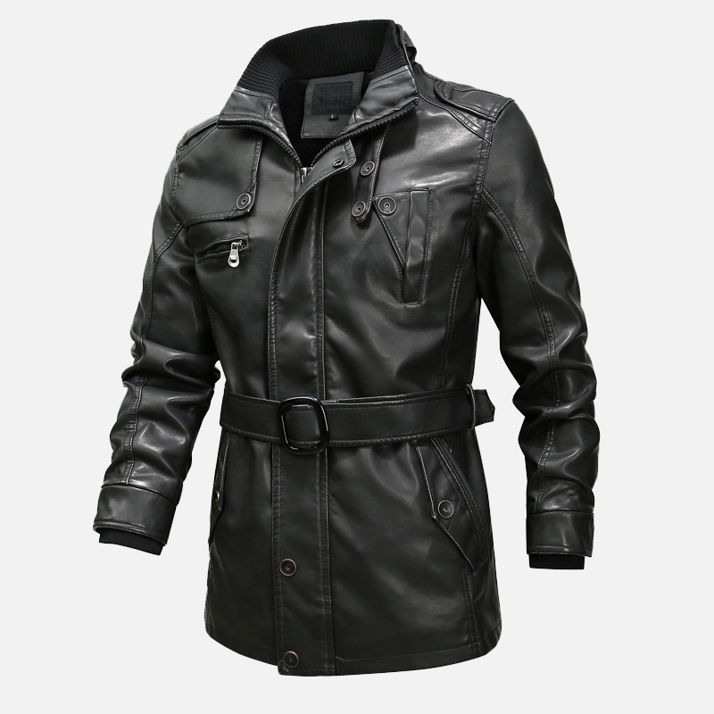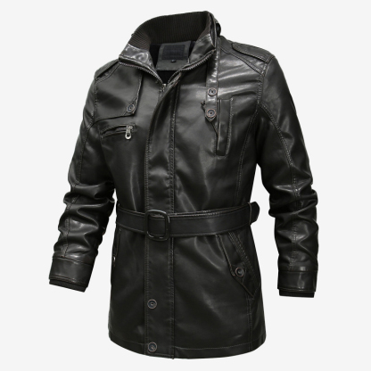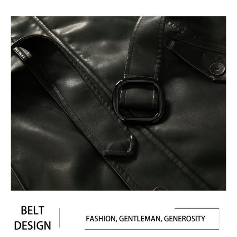 Men's Leather Jacket Motorcycle Jacket Outdoor Daily Casual Plain PU Leather Zipper Belt Stand Collar Overcoat