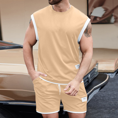 Casual Pocket Contrast Trim Tank & Shorts 2Pcs Set