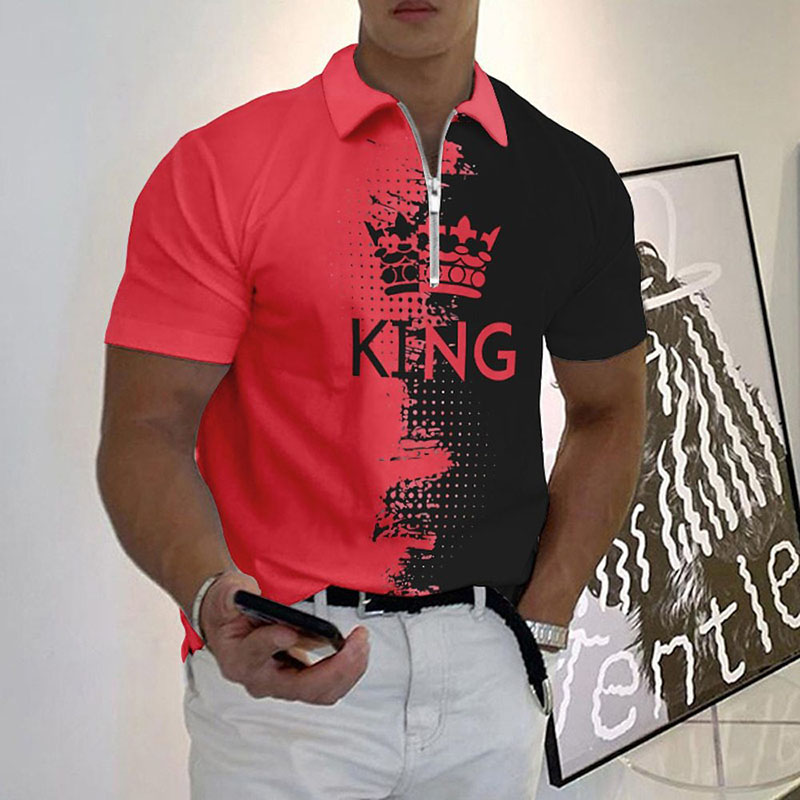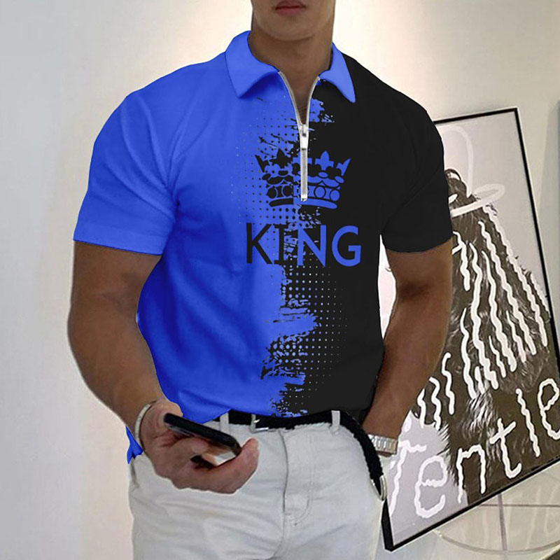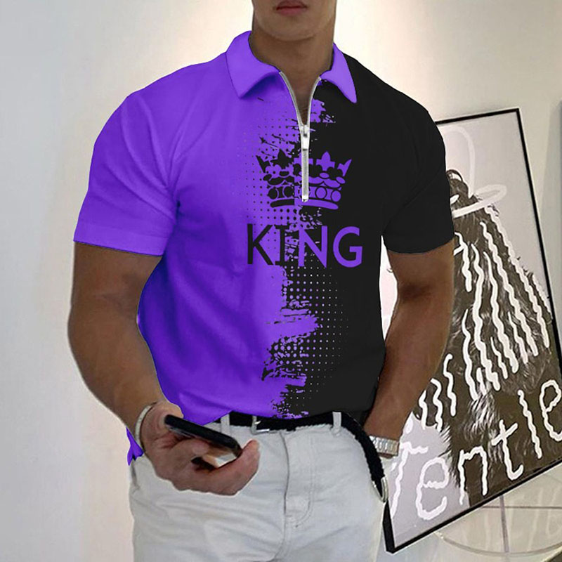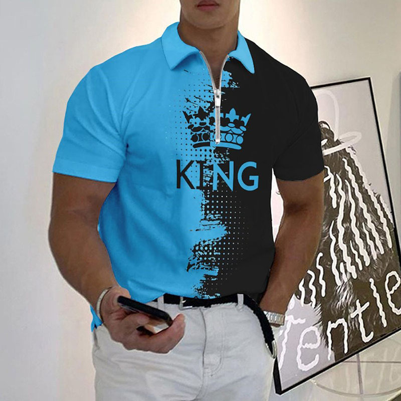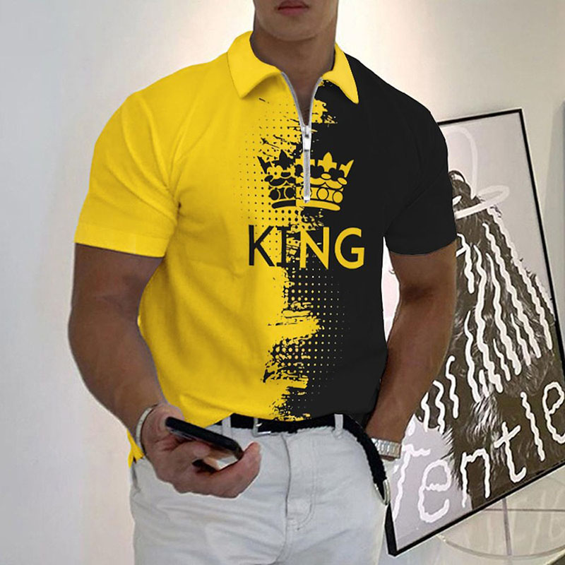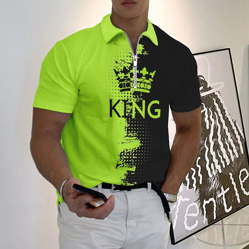 Casual Tie Dye Letter Pattern Zipper Short Sleeve Polo T-Shirt