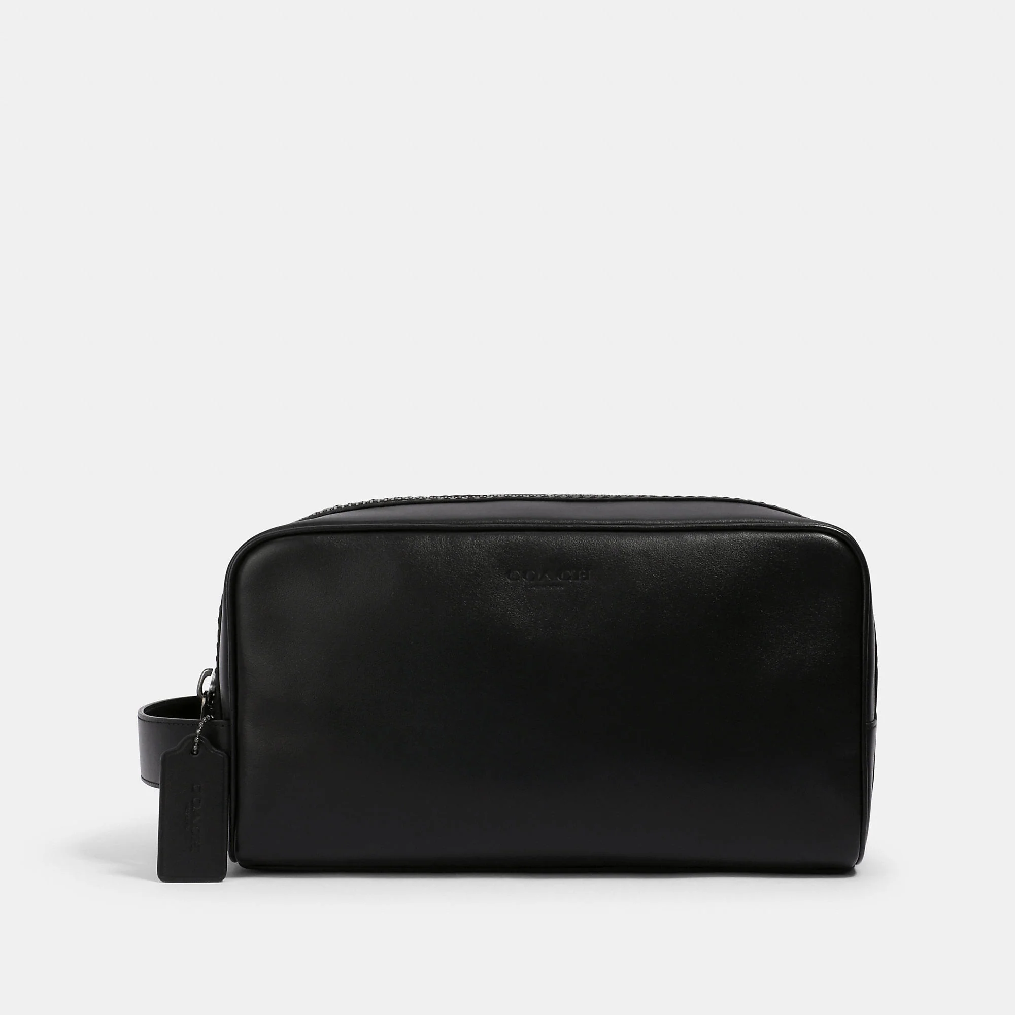 Refined calf leather Inside multifunction pocket Zip closure fabric lining Handle with 1 3/4 drop Outside open pocket 10 1/4 (L) x 5 1/4 (H) x 4 3/4 (W) Style No. 2836 | Coach Outlet Large Travel Kit - Black