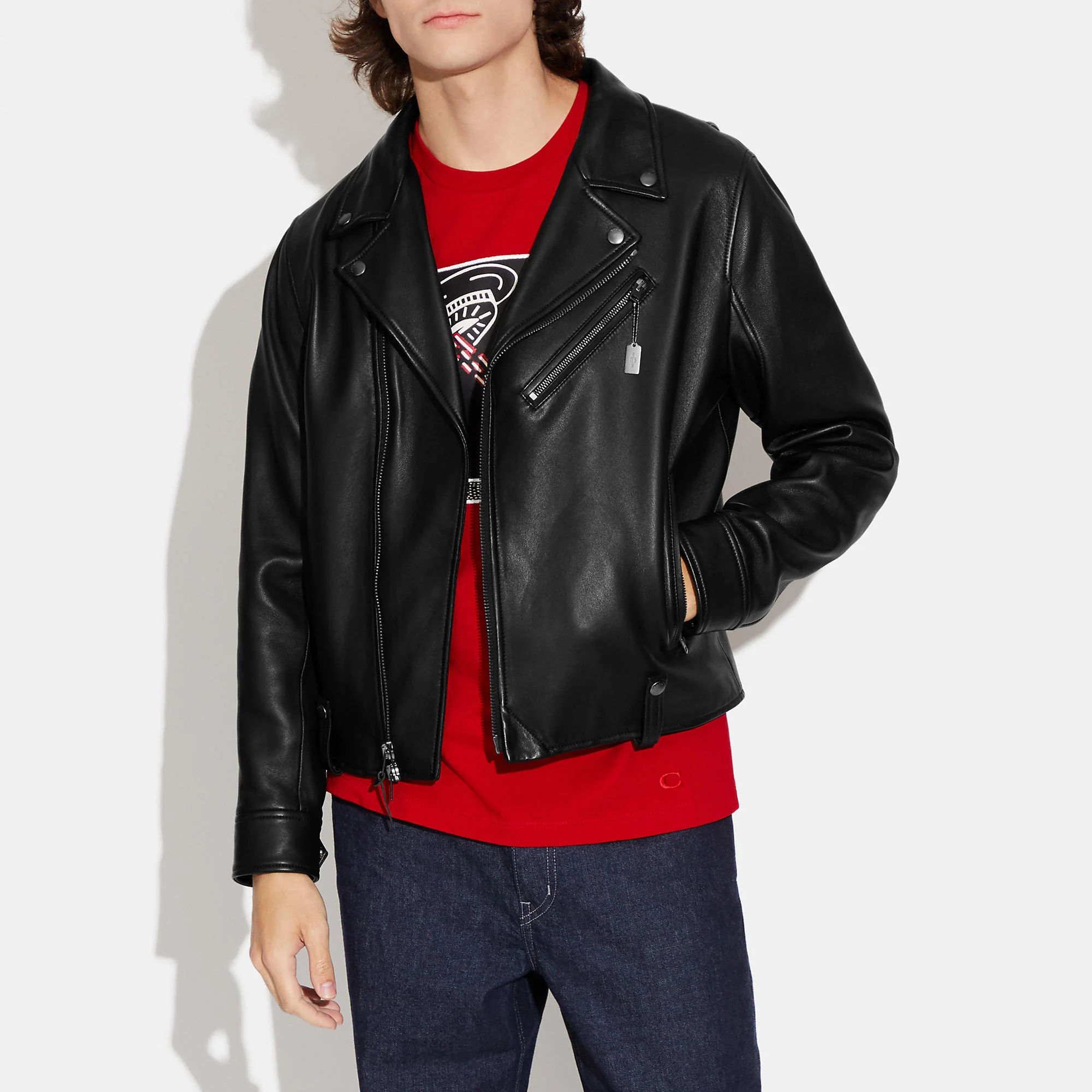 100% lamb leather Lining - 56% polyester 44% viscose Hood - 100% cotton Zip closure Zip pockets Length - 23 3/4 Model is 6'2 (188cm) and wears a size M Style No. C7839 | Coach Outlet Leather Moto Jacket - Black, Size - Medium