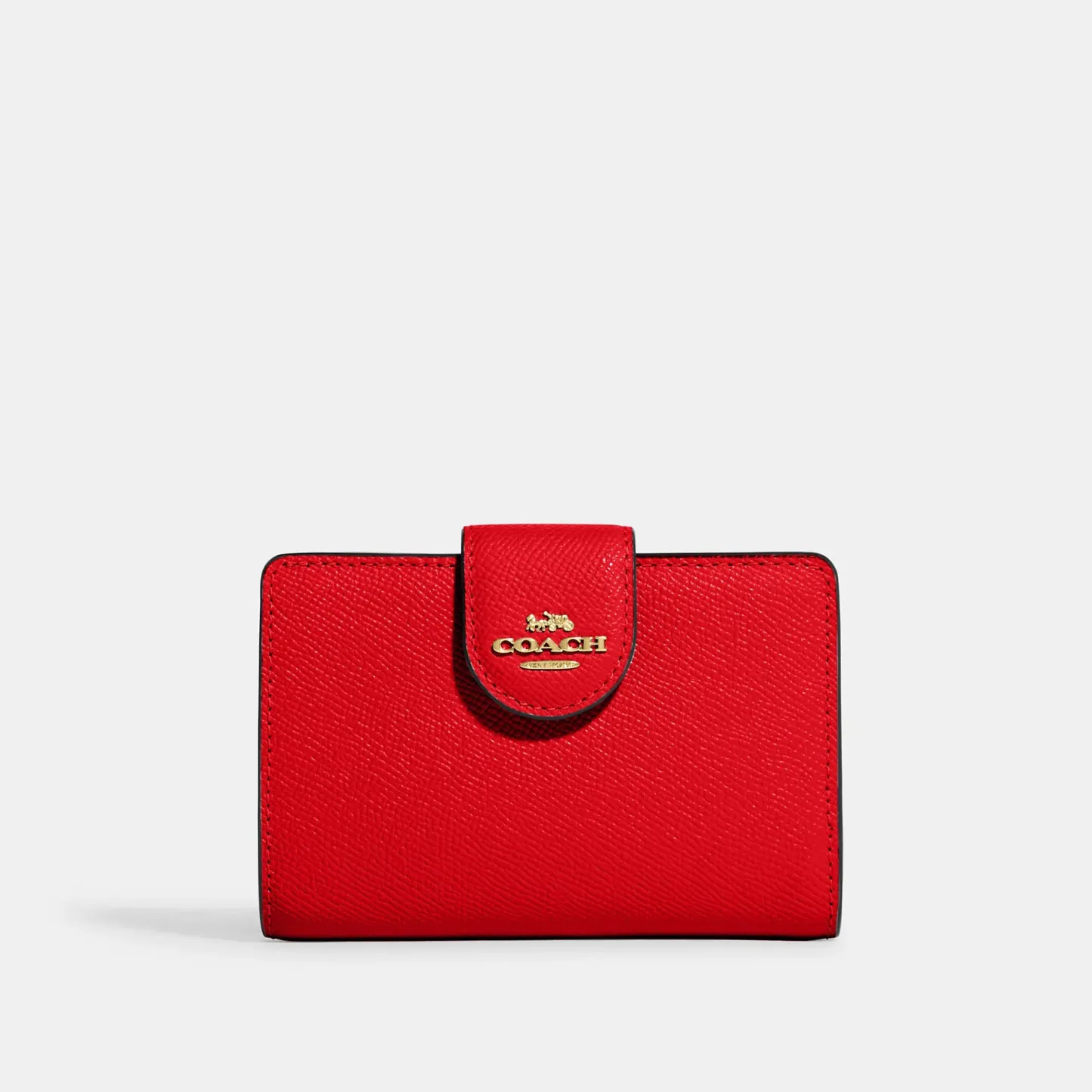 Crossgrain leather Seven credit card slots Bill compartment ID window Snap closure Zip coin pocket 5 (L) x 3 1/2 (H) x 1/2 (W) Style No. 6390 | Coach Outlet Medium Corner Zip Wallet - Gold/Midnight