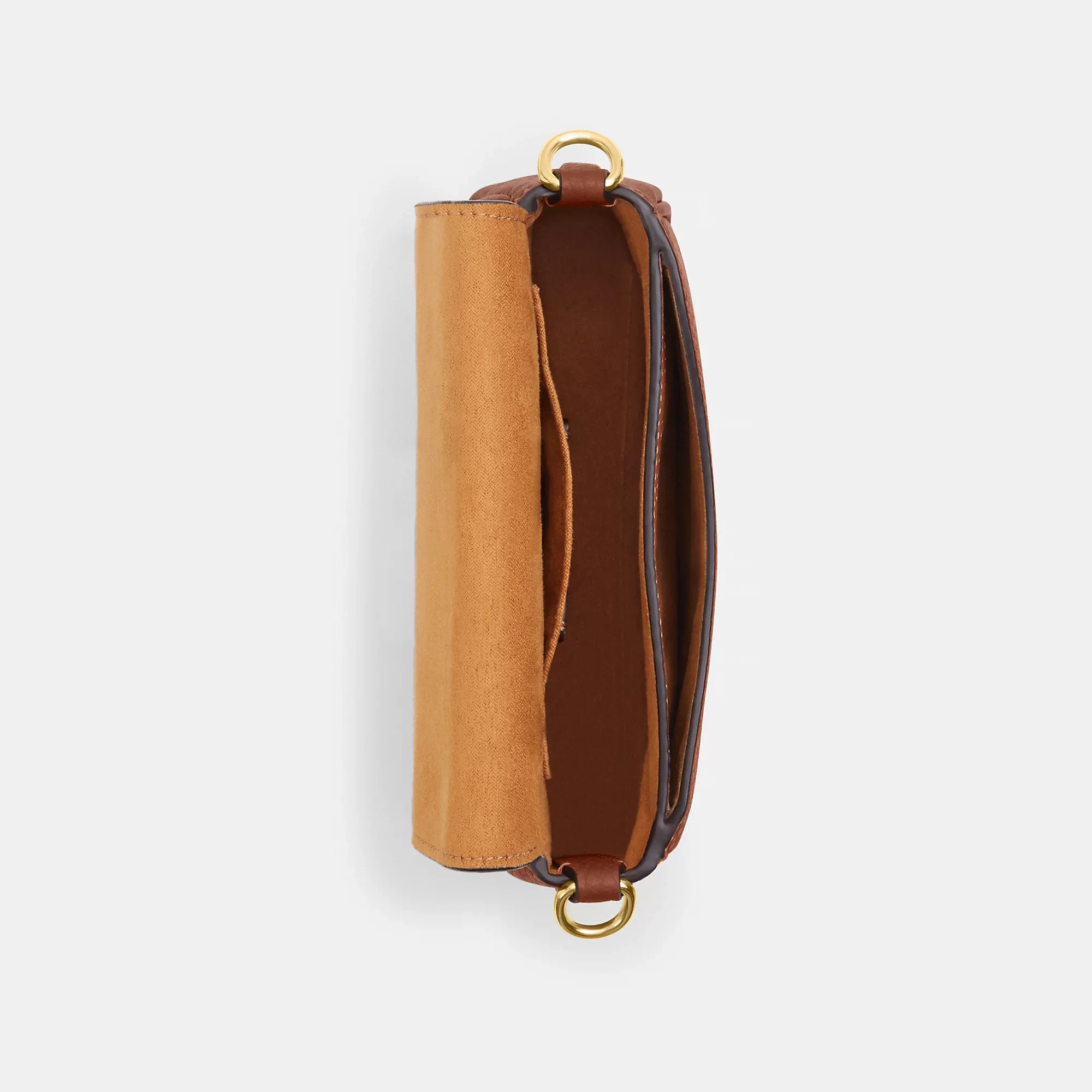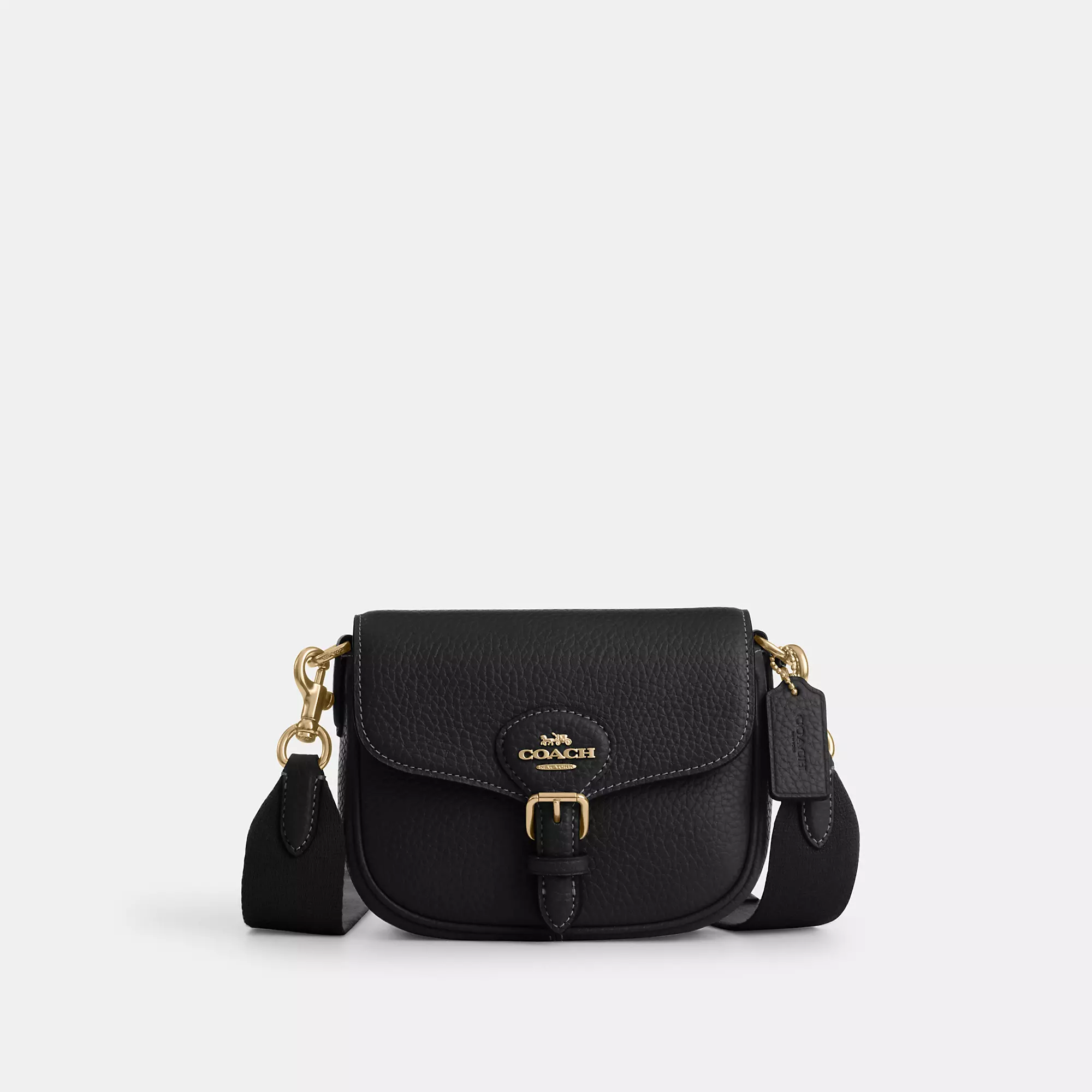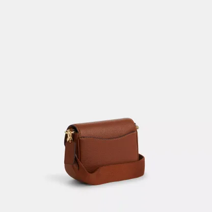 Soft pebble leather Inside multifunction pockets Snap closure fabric lining Outside open pocket Detachable strap with 25 drop for shoulder or crossbody wear 6 1/2 (L) x 5 (H) x 2 1/2 (W) Style No. CP001 | Coach Outlet Amelia Small Saddle Bag - Gold/Redwood