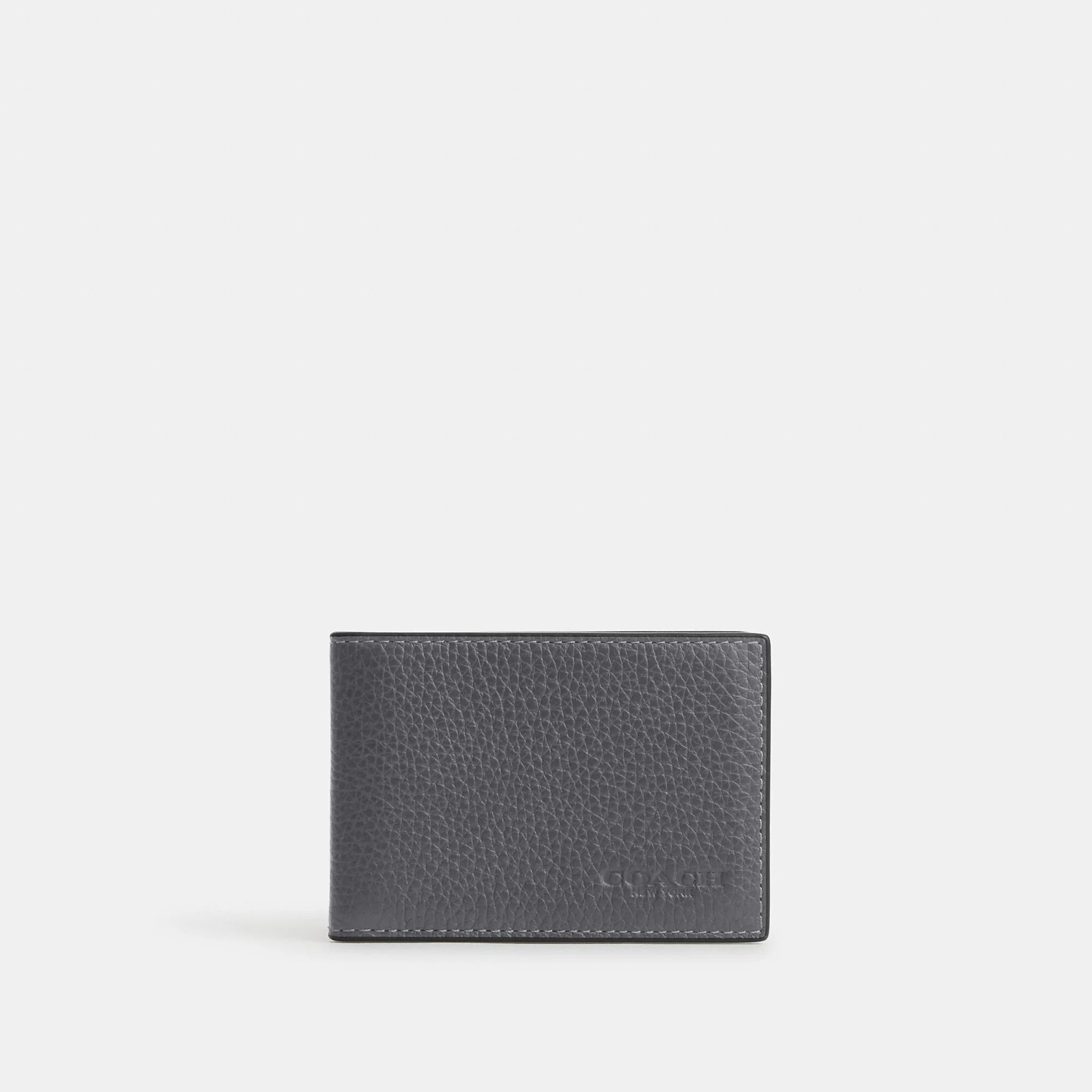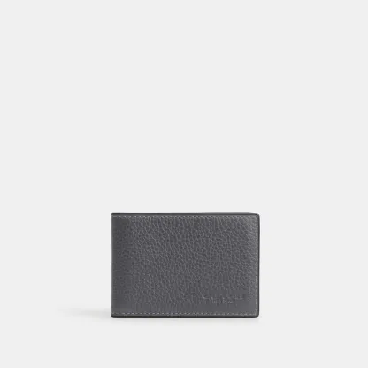 Refined pebble leather Two inside credit card slots Inside open pocket ID window Two outside credit card slots Outside open pocket 4 (L) x 2 3/4 (H) Style No. CM167 | Coach Outlet Compact Billfold Wallet - Grey