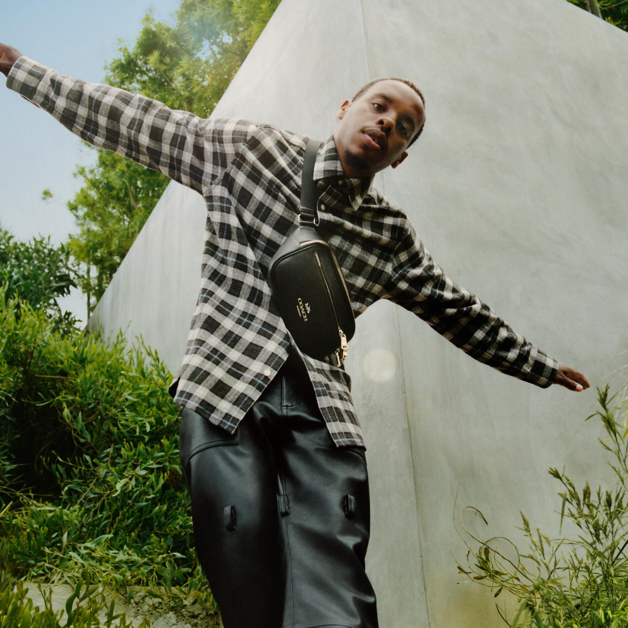 Refined pebble leather Belt bag - Inside multifunction pocket Zip closure fabric lining Outside zip pocket Adjustable strap with 48 length for wear at waist 11 1/4 (L) x 5 1/2 (H) x 2 1/4 (W) Removable round coin case - Zip closure fabric lining Attached hinged D-ring 3 1/2 (L) x 3 1/2 (W) x 1 (W) Style No. CJ507 | Coach Outlet Elias Belt Bag - Black