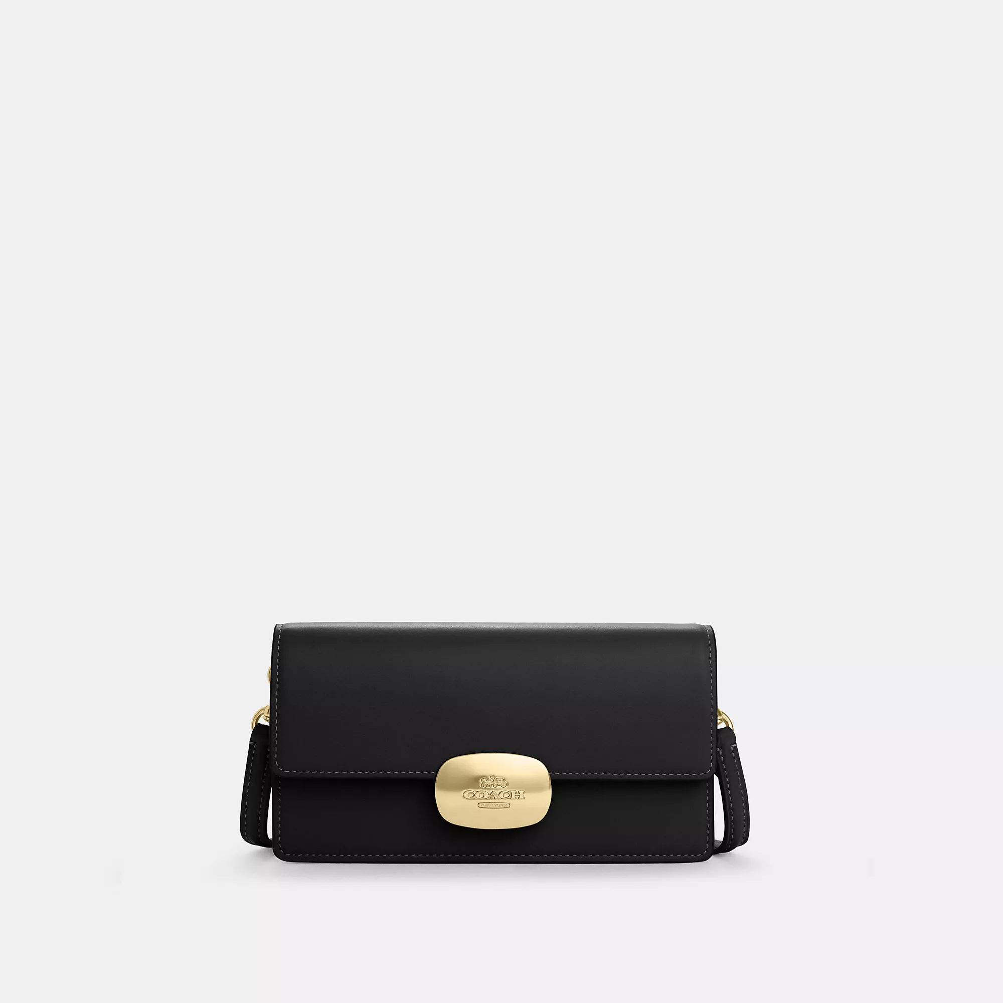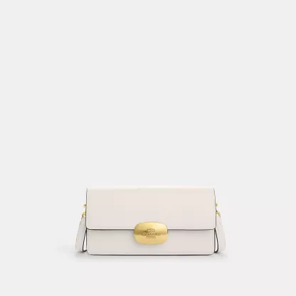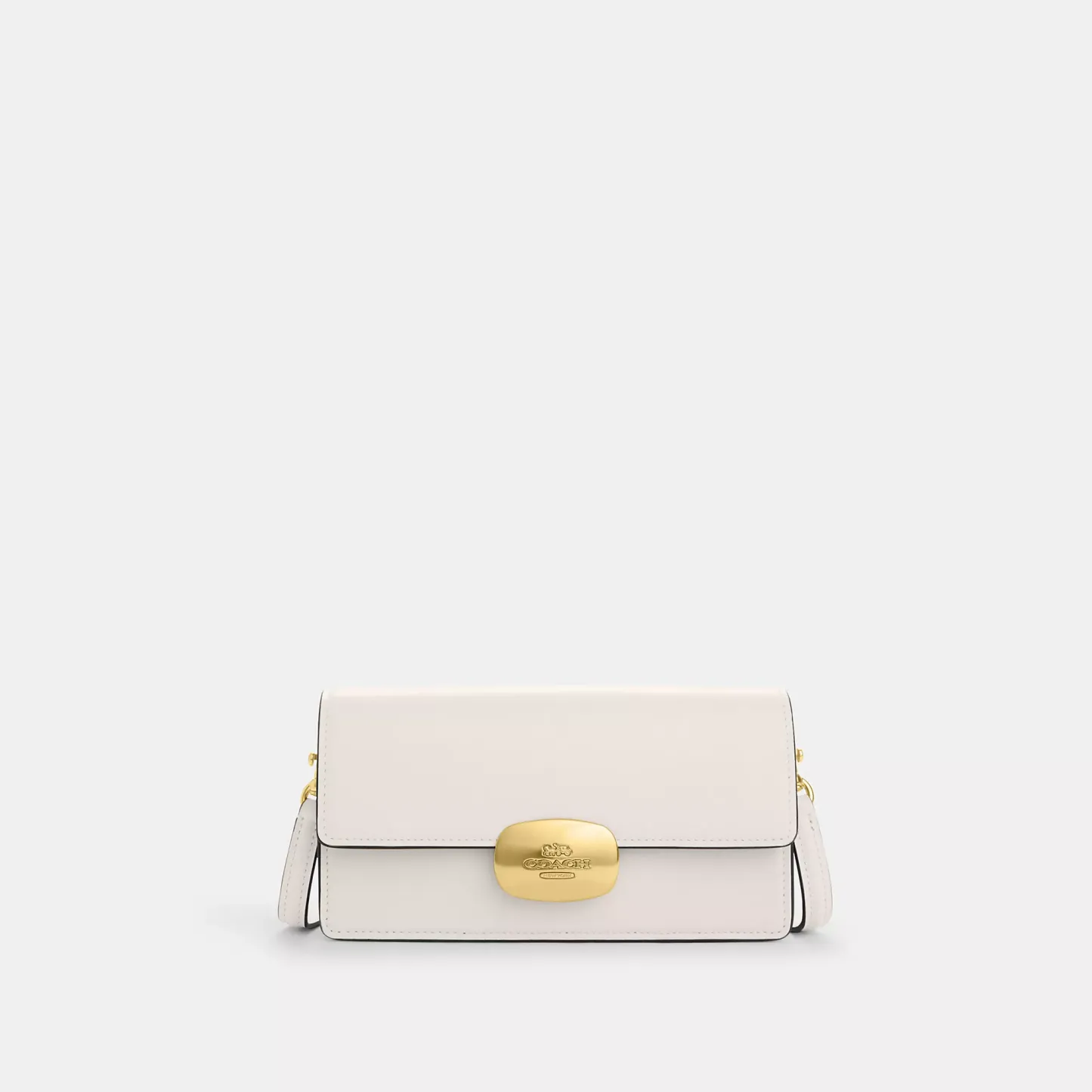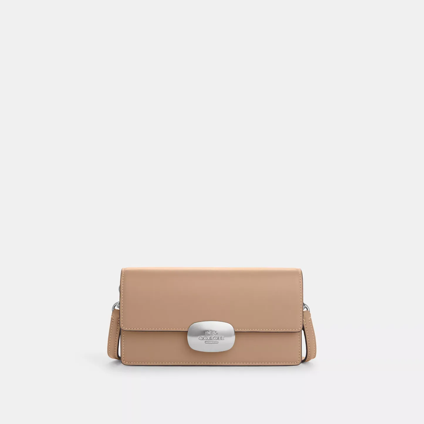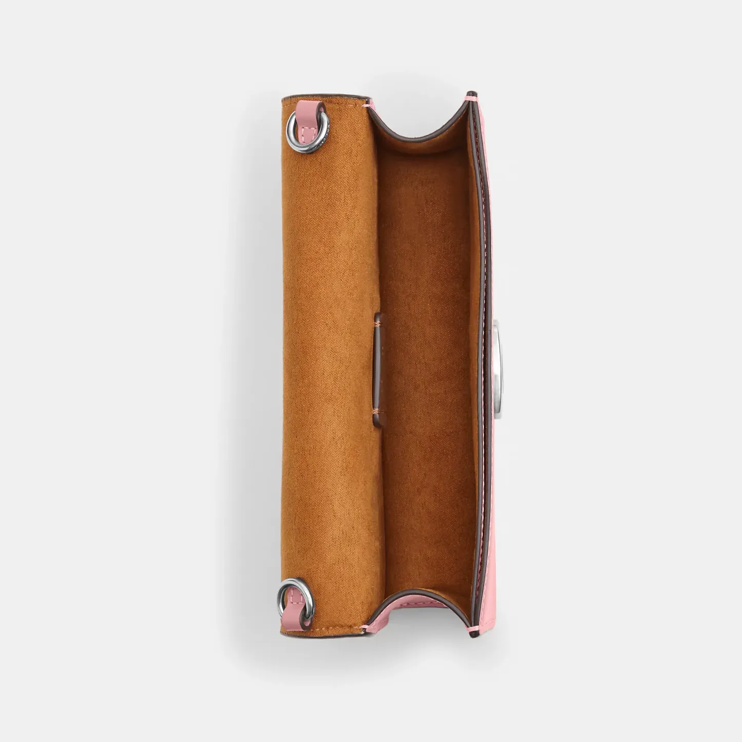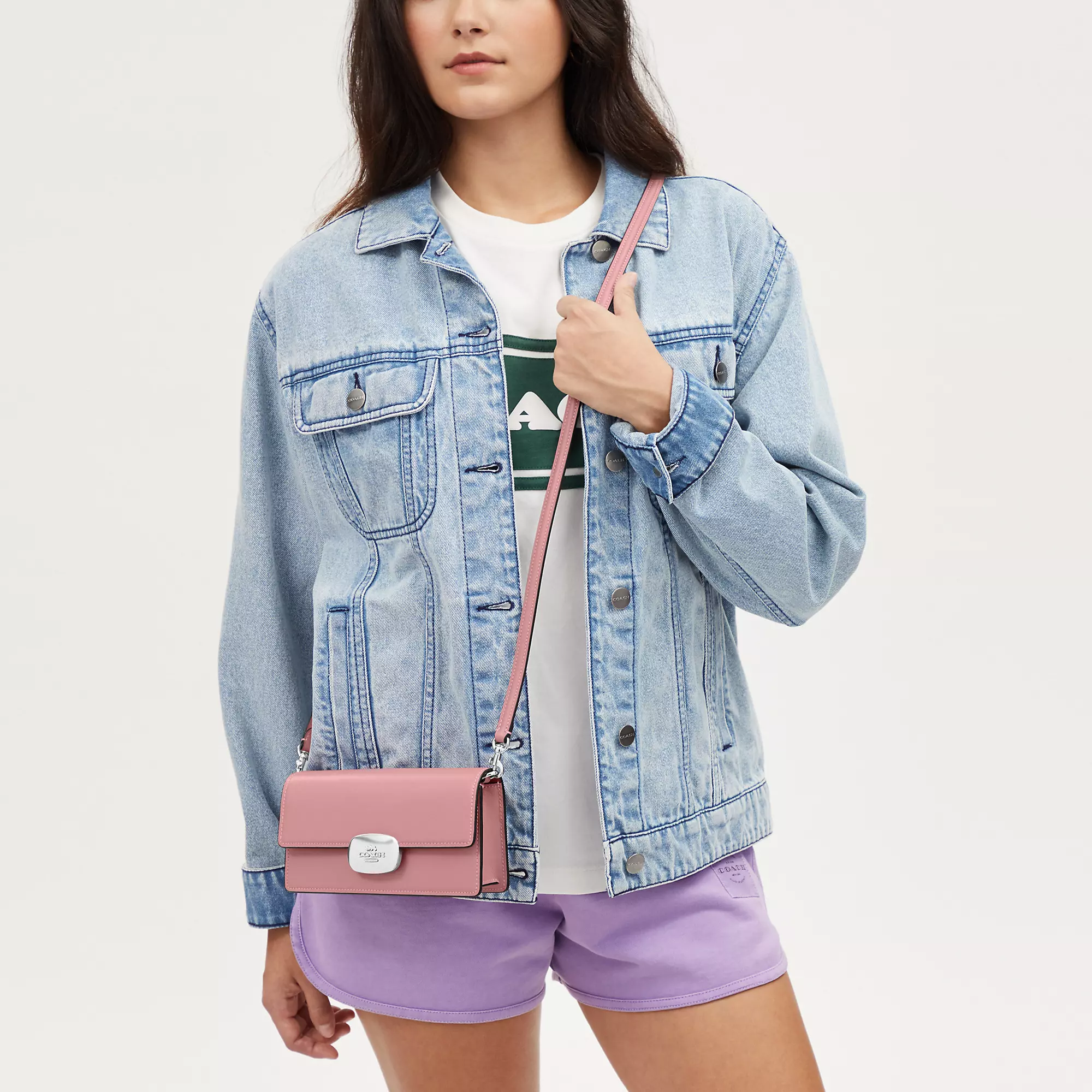 Refined calf leather Inside multifunction pocket Snap closure fabric lining Outside open pocket Detachable strap with 23 drop for shoulder or crossbody wear 7 1/2 (L) x 4 (H) x 1 1/2 (W) Style No. CP045 | Coach Outlet Eliza Small Flap Crossbody - Pink
