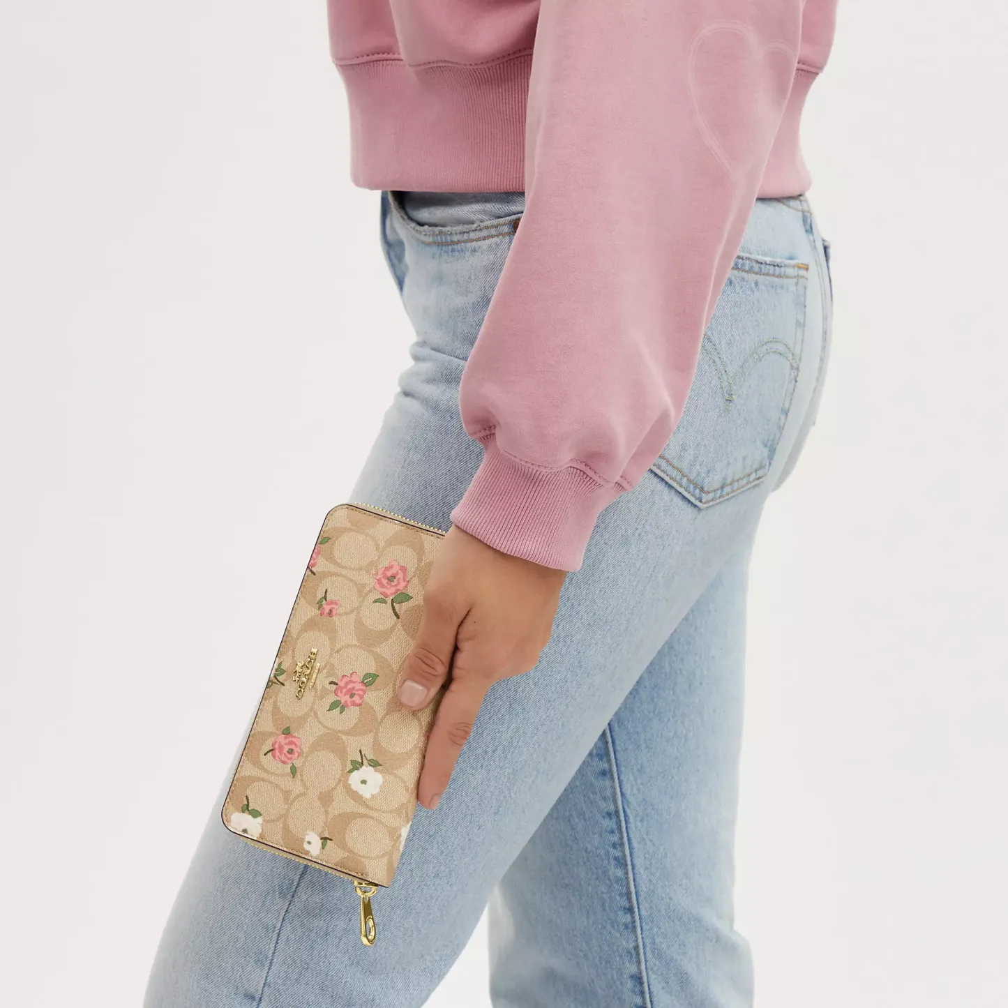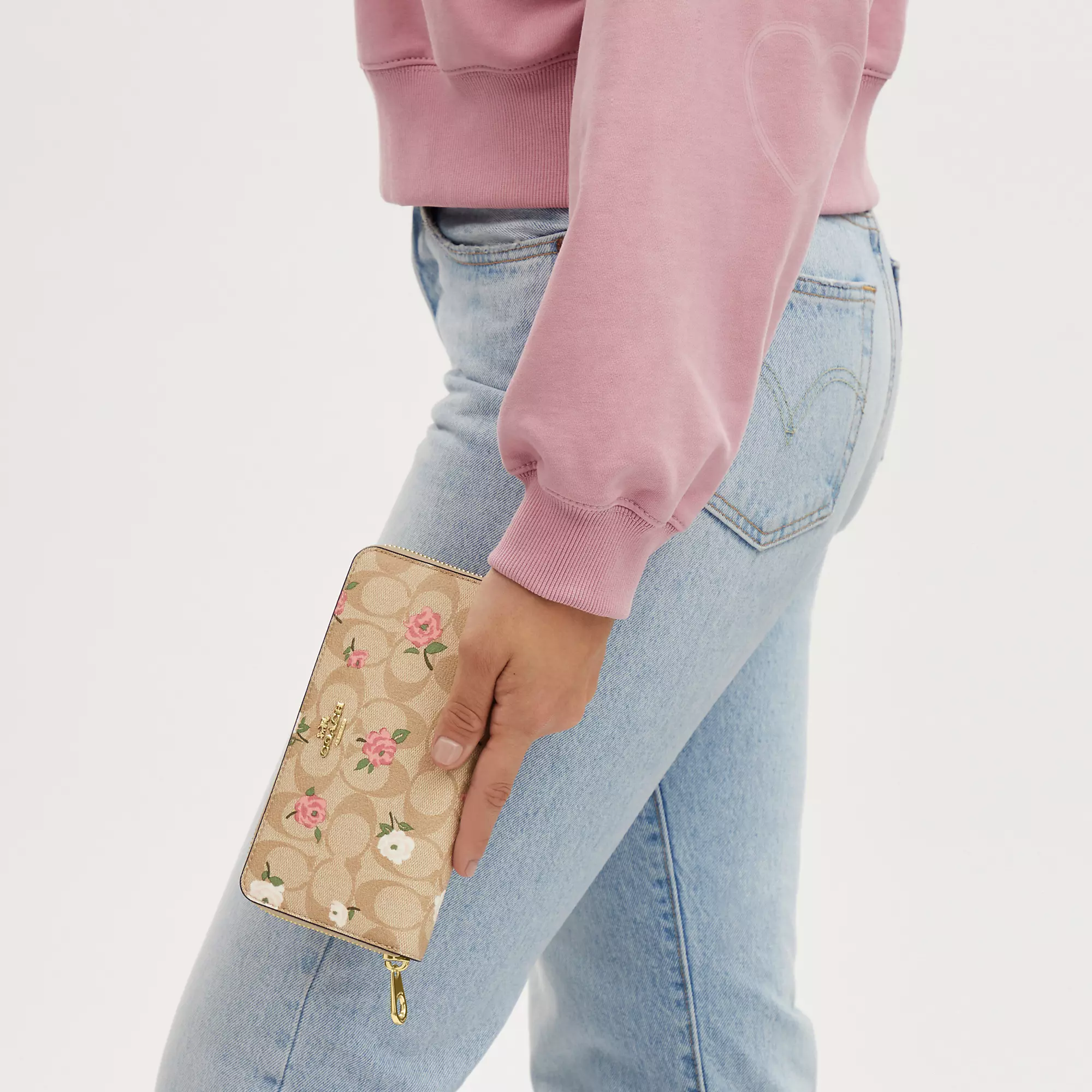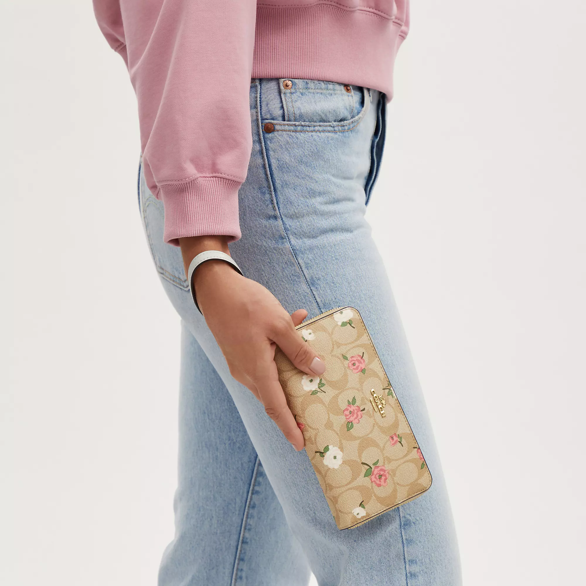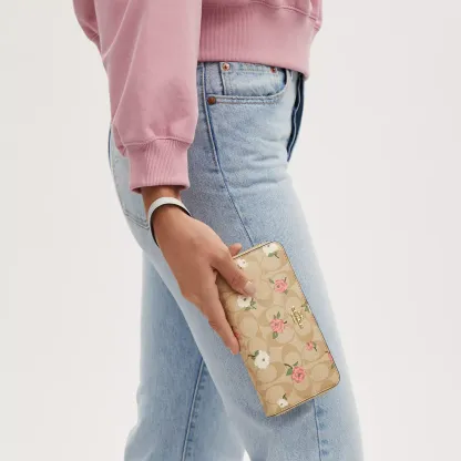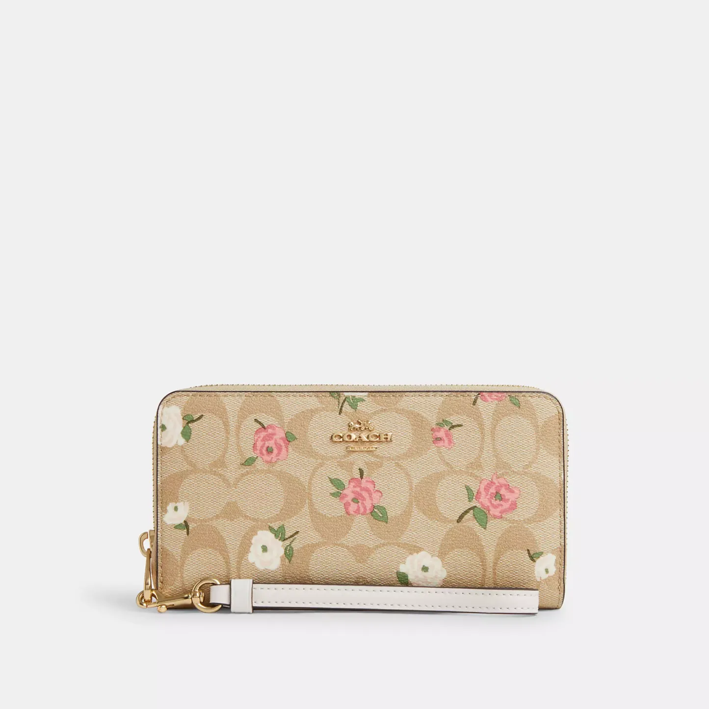 Coach Outlet Long Zip Around Wallet In Signature Canvas With Floral Print