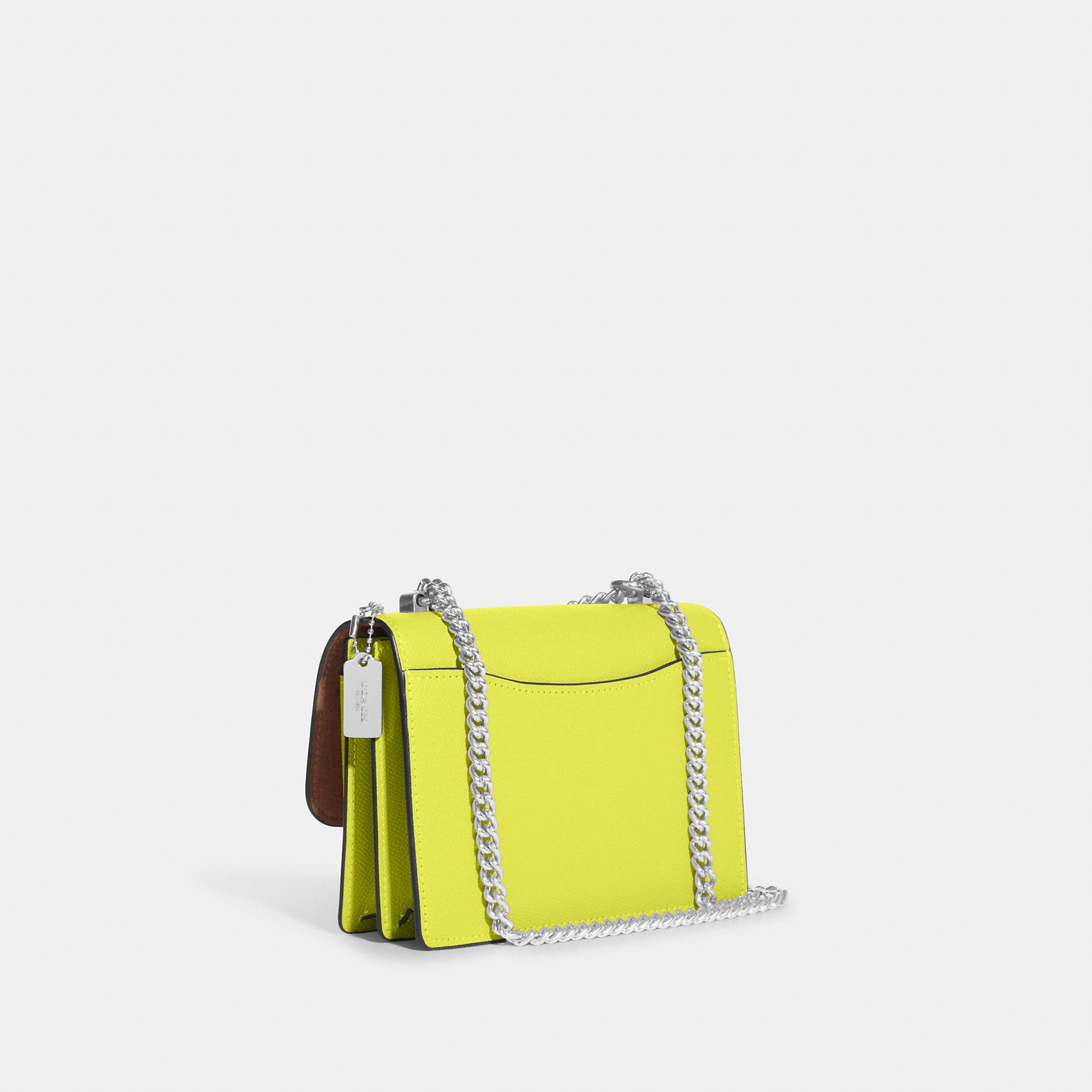 Crossgrain leather Inside multifunction and zip pockets Snap closure fabric lining Outside open pocket Handles convert to shoulder strap with 22 drop 7 (L) x 5 1/4 (H) x 2 (W) Style No. C9949 | Coach Outlet Mini Klare Crossbody - Yellow