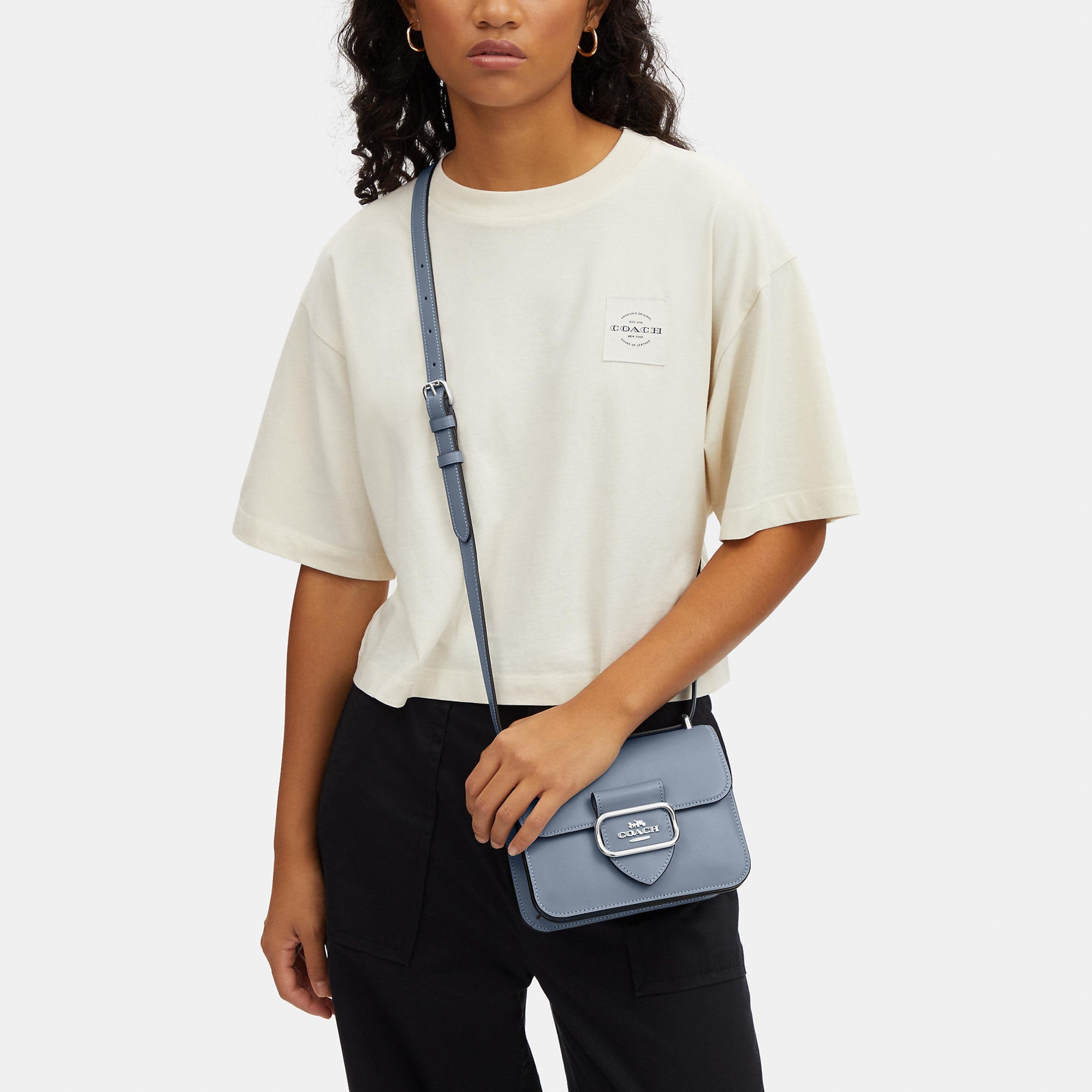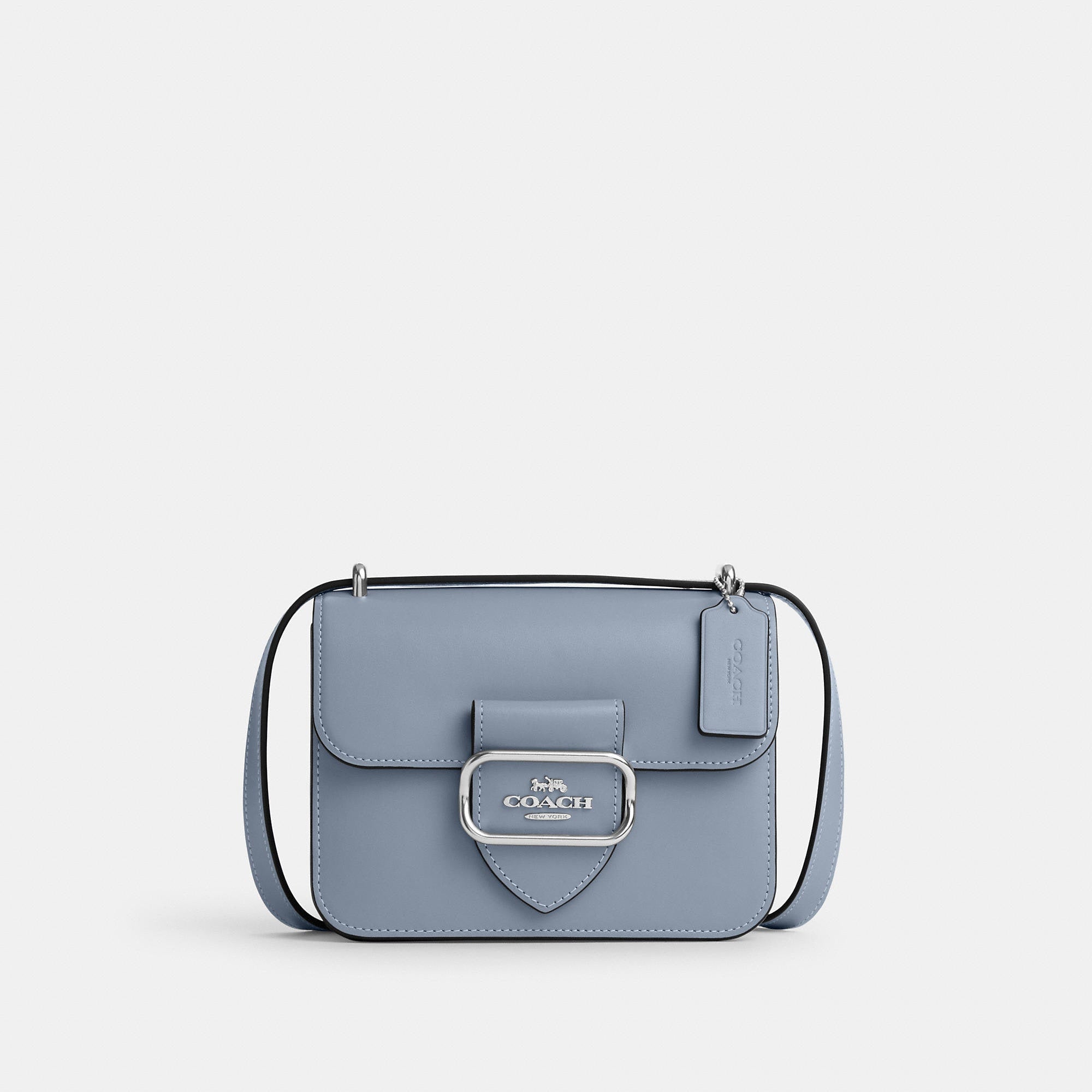 Refined calf leather Inside zip and multifunction pockets Snap closure fabric lining Outside open pocket Adjustable strap with 21 1/2 drop for shoulder or crossbody wear 7 1/4 (L) x 5 3/4 (H) x 2 1/4 (W) Style No. CL416 | Coach Outlet Morgan Square Crossbody - Grey