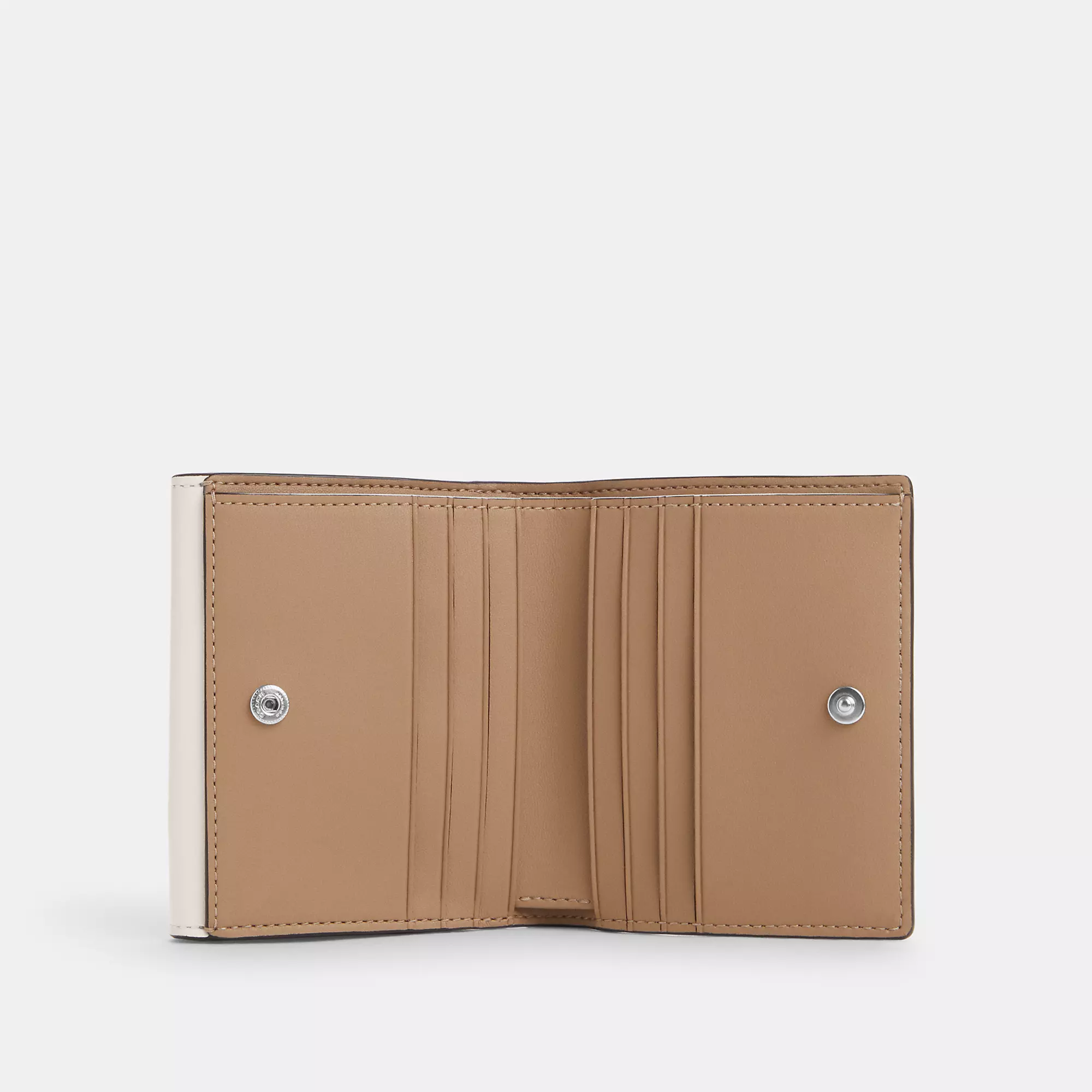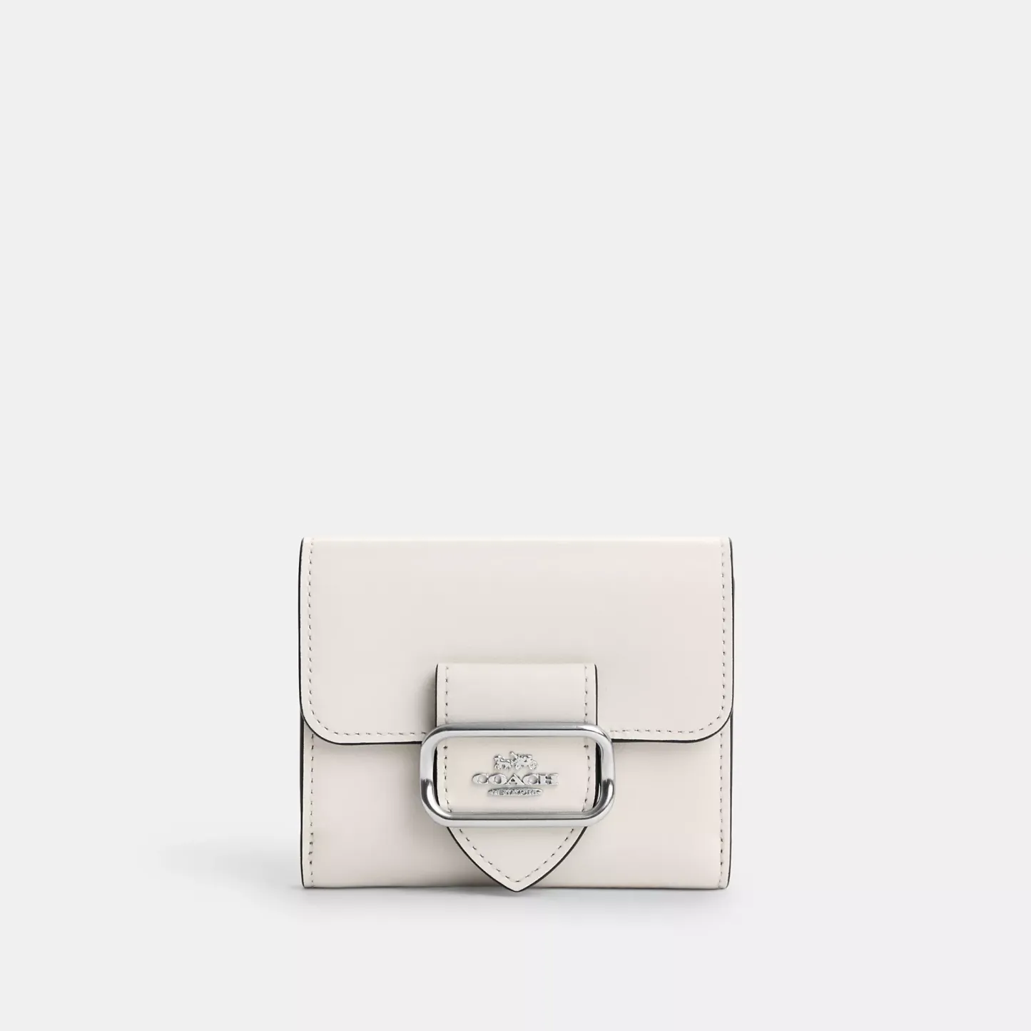 Refined calf leather Six credit card slots Full-length bill compartment Snap closure Outside snap coin pocket 4 1/4 (L) x 3 3/4 (H) Style No. CP461 | Coach Outlet Small Morgan Wallet - Silver/Chalk
