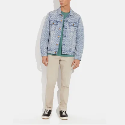 100% cotton Button closure Flap and slip pockets Length - 24 1/2 Model is 6'2 (188cm) and wears a size M Style No. C0918 | Coach Outlet Signature Denim Jacket - Blue, Size - X-Large