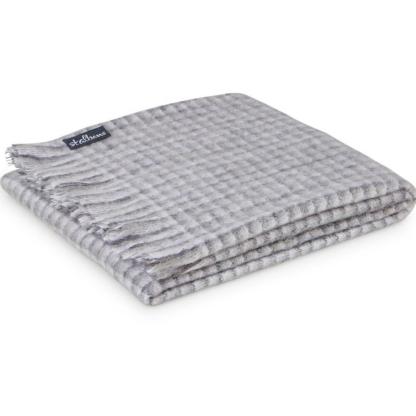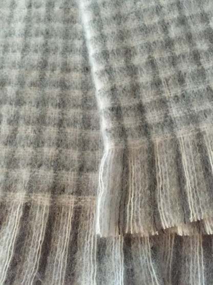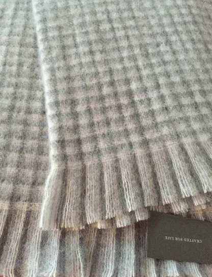 St Albans "Cobweb" Mohair Throw Rug features a small graduated block check in grey and neutral tones. A lovely textural neutral colour combination which will suit a variety of decors.