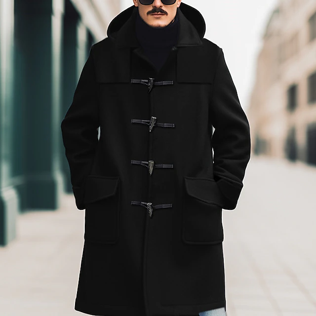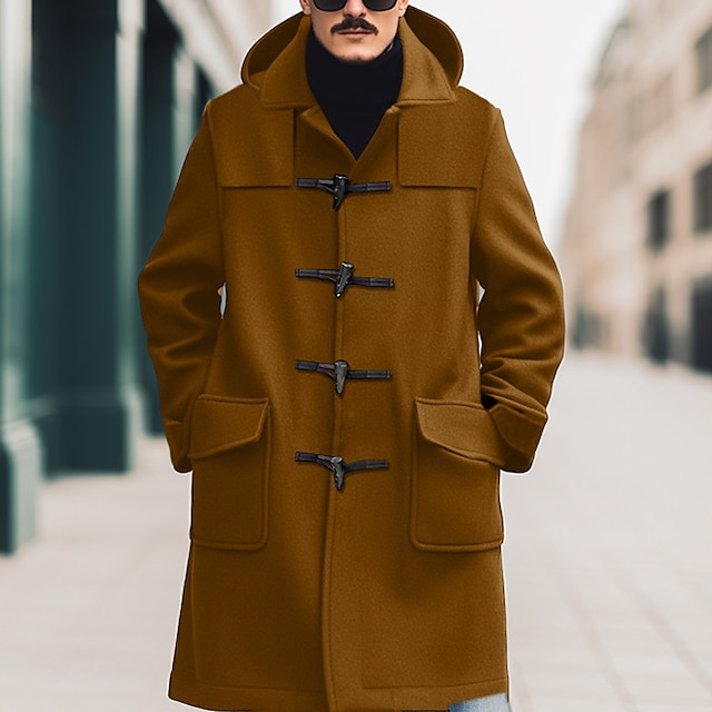 Daily Solid Color Flap Pockets Hooded Overcoat