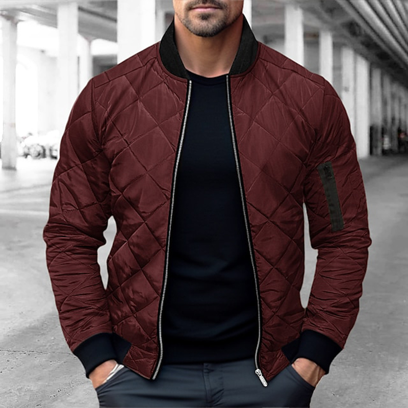 Daily Solid Color Stand Collar Zipper Long Sleeve Puffer Jacket