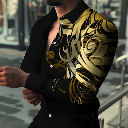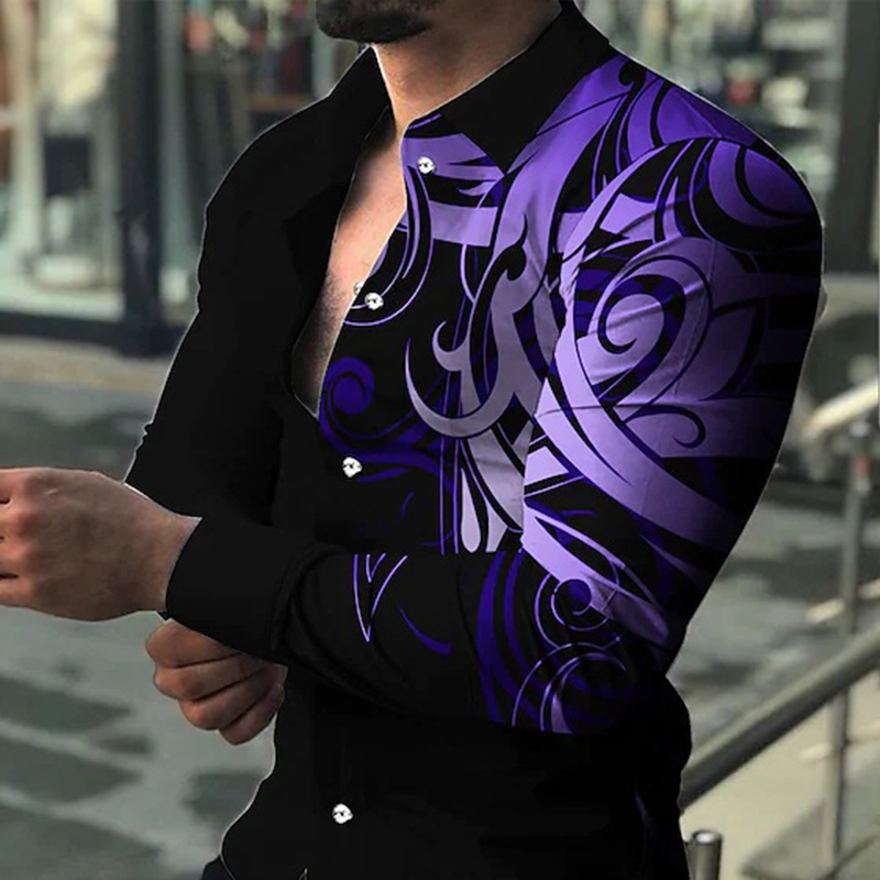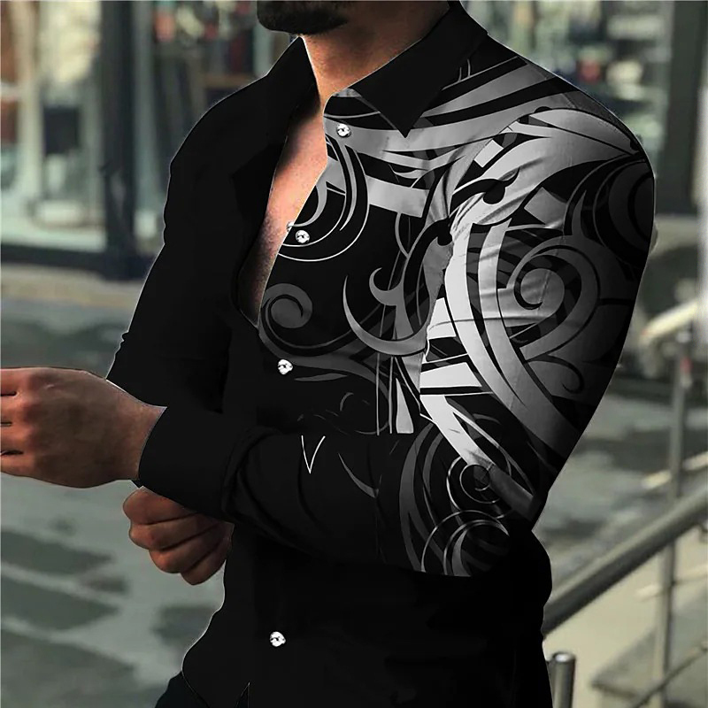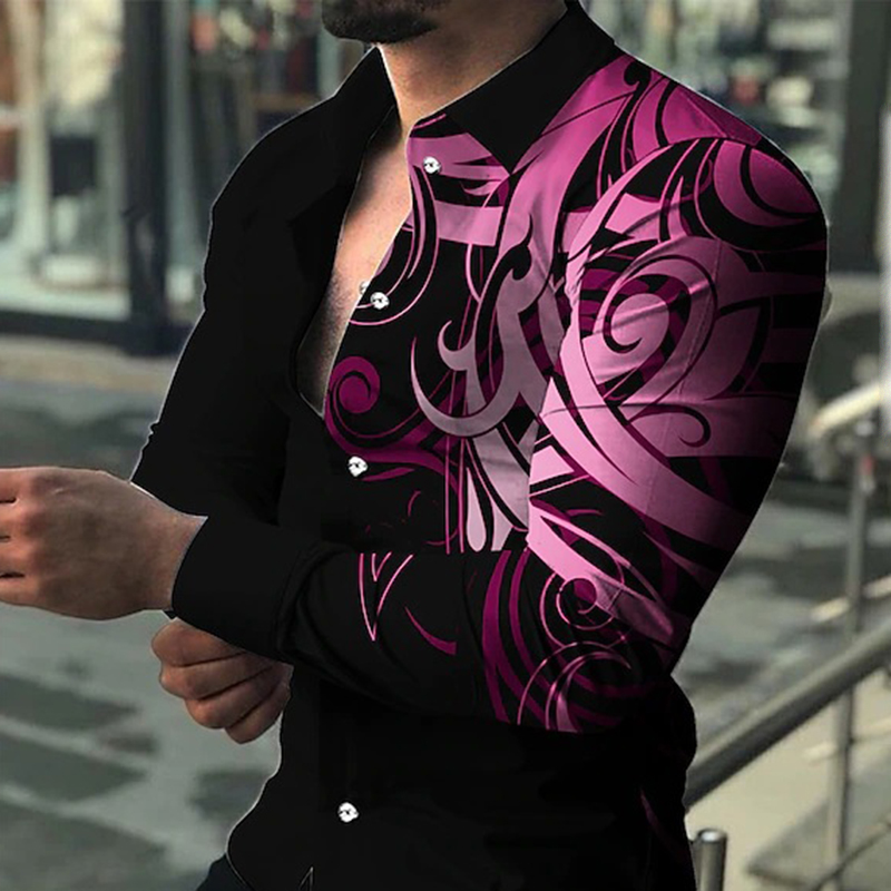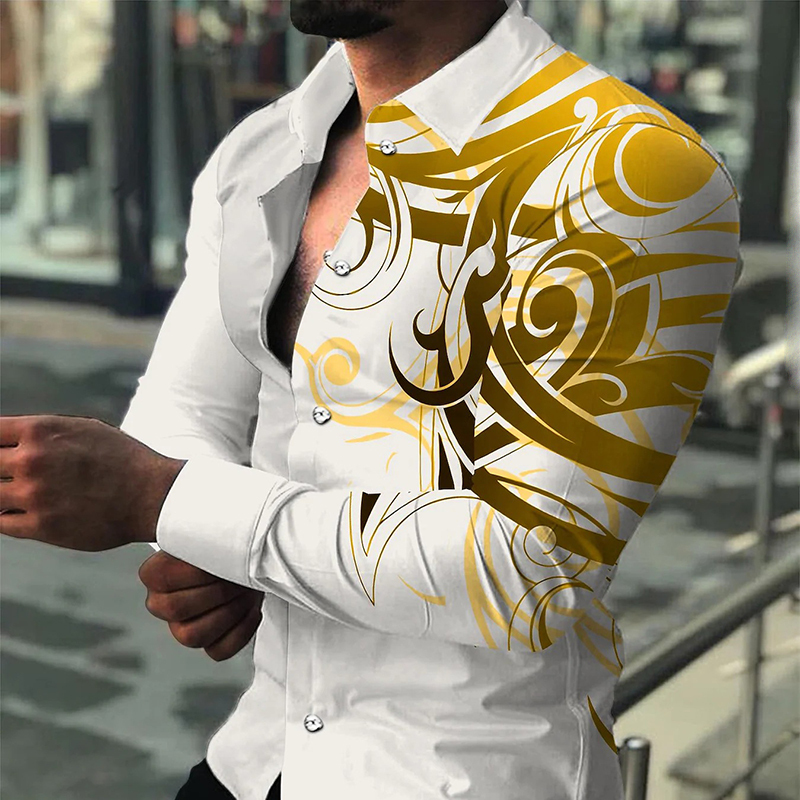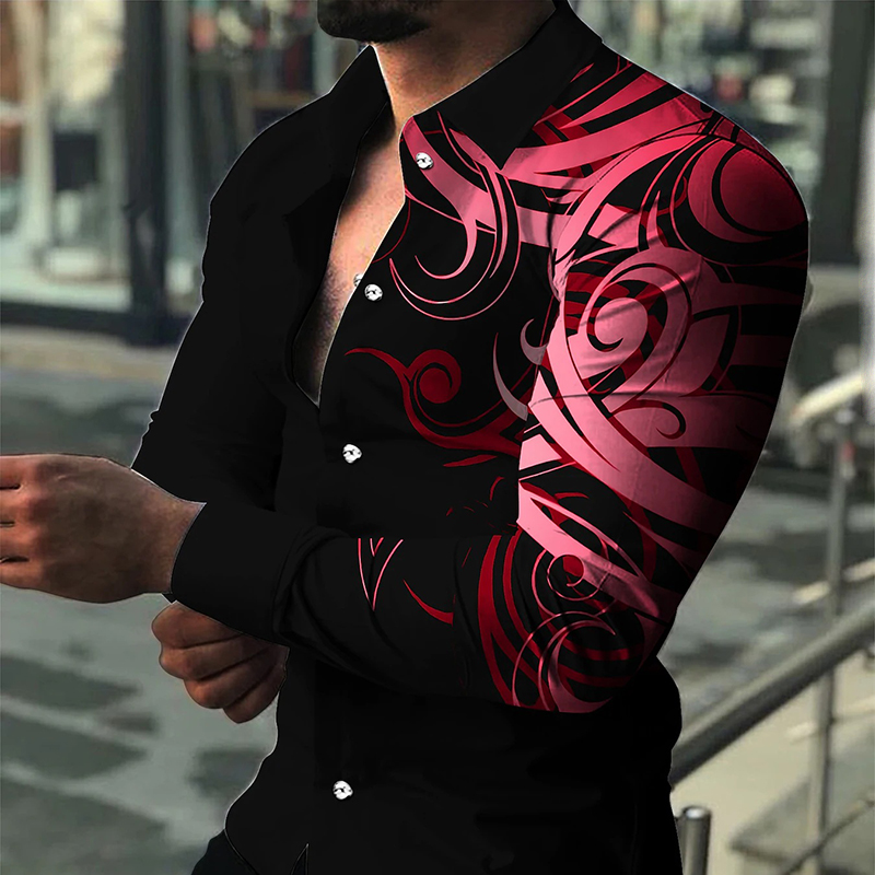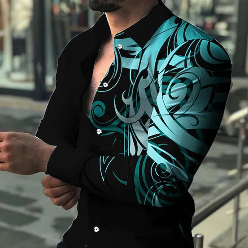 Fashioin Turndown Collar Single-breasted Abstract Pattern Shirt