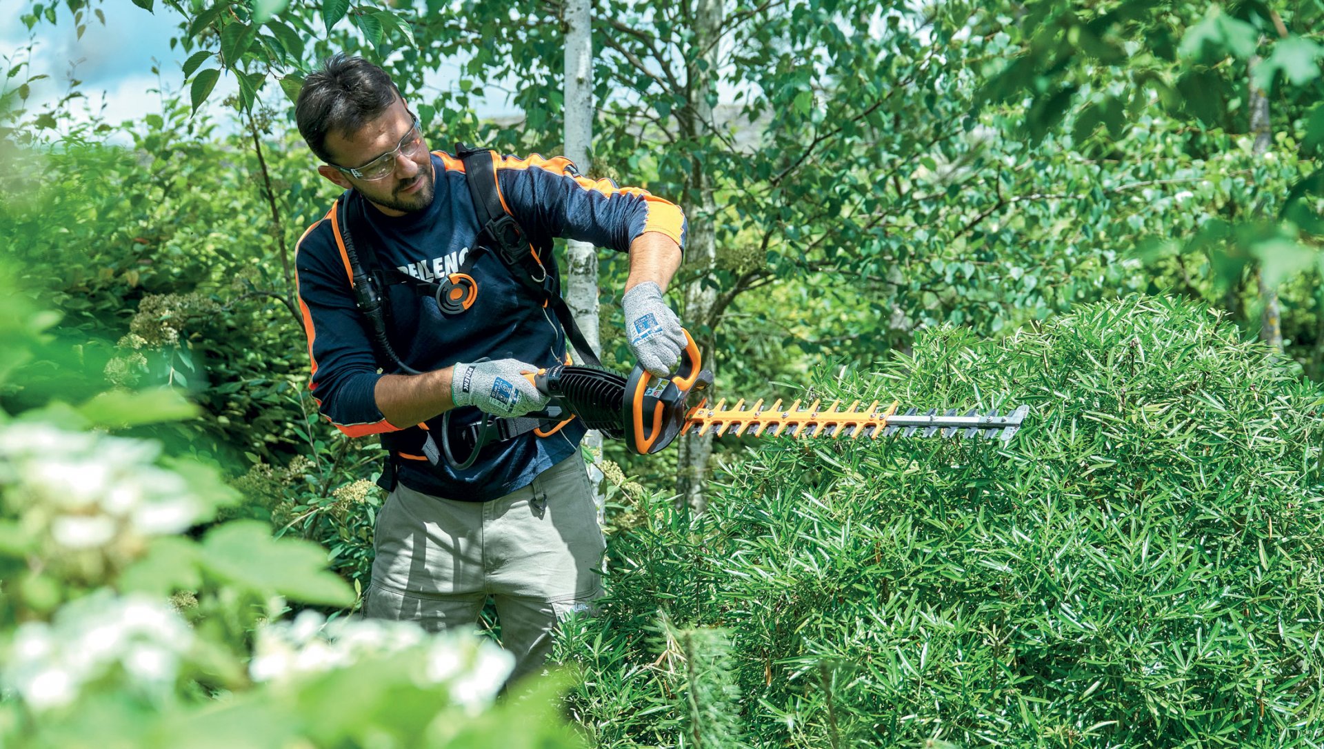 A real concentrate of power and simplicity, HELION 3 is now THE reference in professional battery-powered hedge trimmers for the maintenance of green spaces. Ultra versatile with its 3 cutter blades in that can be interchanged in 1 minute, it guarantees perfect cutting back and finishing work. Its exceptional cutting capacity allows it to cut sections up to 1.2in diameter in complete safety. It allows you to work in any weather with up to a full day of autonomy. HELION 3 makes pruning and trimming easy!