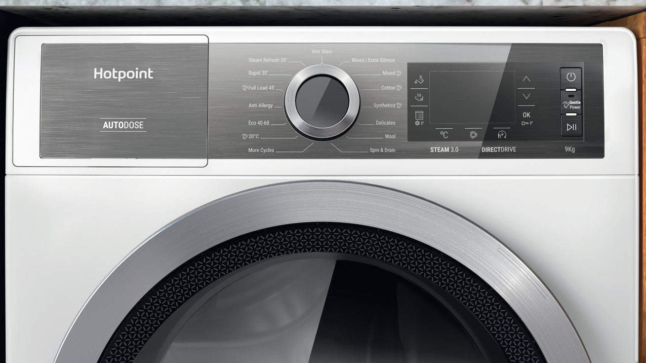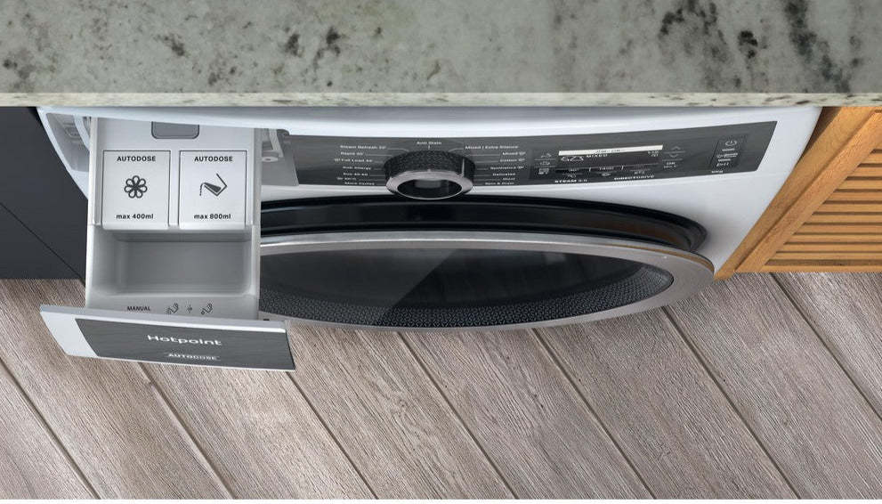 | Hotpoint AutoDose | Fill once and wash up to 26 loads of laundry. Never wonder how much detergent is needed again. AutoDose precisely detects the right amount of detergent and softener needed dependent on the wash load, so your fabrics stay looking and feeling great, whilst saving you money. |