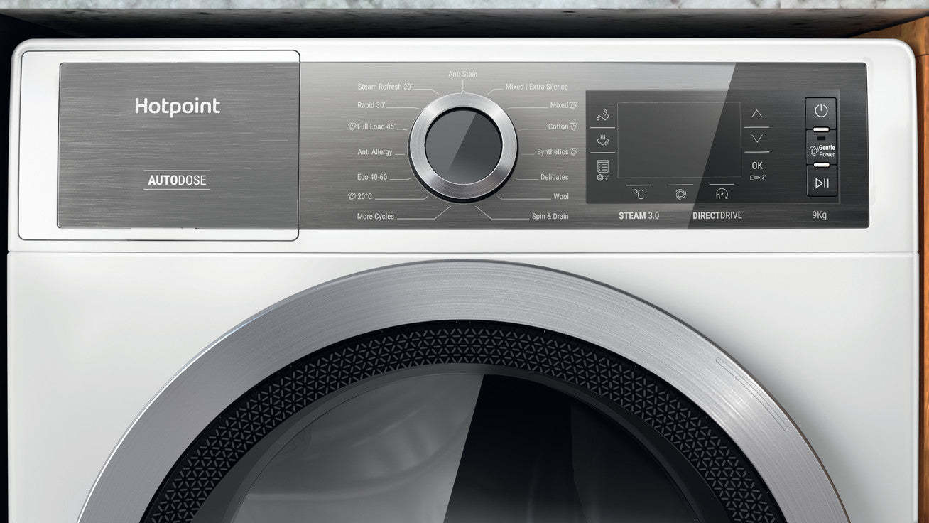 Upgrade your laundry routine with the Hotpoint AutoDose H8W946WBUK 9Kg Washing Machine with 1400 rpm - White - A Rated. Order yours today and experience the future of laundry technology.