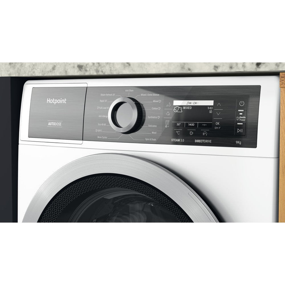 Hotpoint GentlePower H8W946WBUK 9Kg Washing Machine with 1400 rpm - White - A Rated