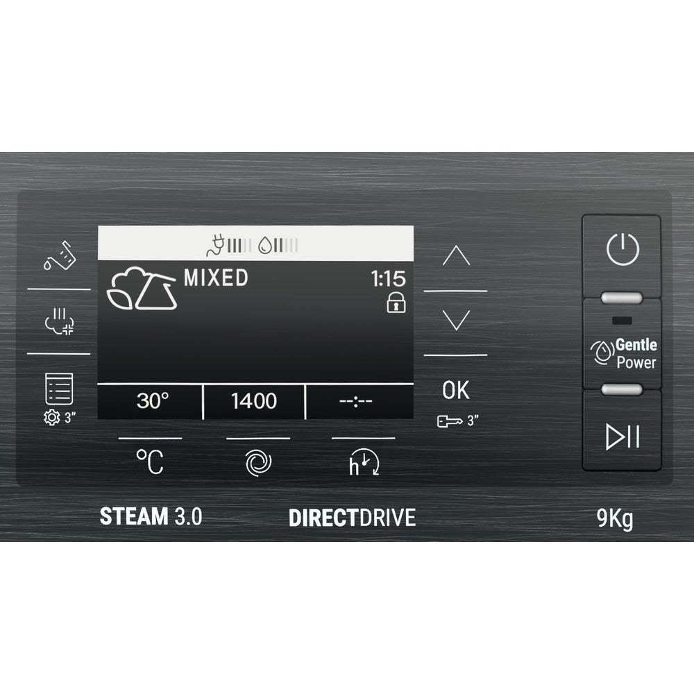 But that's not all - the Hotpoint GentlePower technology takes washing to a whole new level. By carefully spraying water onto your laundry like a waterfall, it provides a thorough wash while optimizing water and energy use by 65% and 59%, respectively. This means you can enjoy a powerful clean without wasting resources.