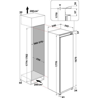 The fridge also comes with a 1 year labour and 10 year parts manufacturer guarantee, giving you peace of mind and assurance of its quality. The dimensions of the fridge are H:1771mm x W:540mm x D:545mm, making it a compact and space-saving option for your kitchen. Upgrade your kitchen with this Hotpoint integrated fridge and enjoy its convenience and efficiency.