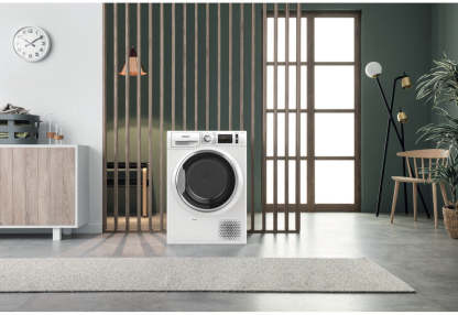 Introducing the Hotpoint NTM118X3XBUK 8Kg Heat Pump Condenser Tumble Dryer, the perfect addition to any stylish home. With its sleek white design and A+++ energy efficiency rating, this dryer not only looks great but also helps save on energy costs.