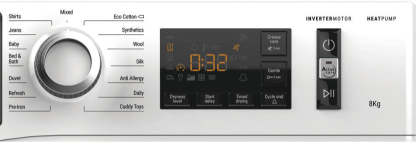 The Inverter motor ensures silent operation, long lasting performance, and high energy efficiency. And with the Pre-Ironing Cycle, you can easily remove creases from dried clothing before even having to iron.