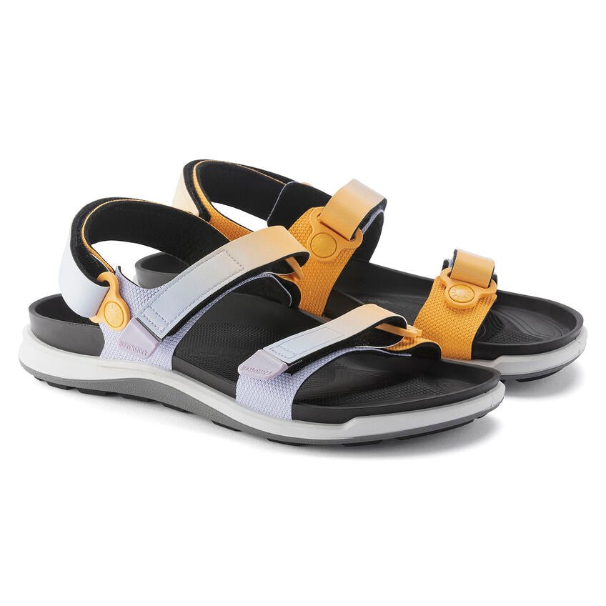 - Details: two straps, each with an individually adjustable hook-and-loop fastener; ankle strap; color-coordinated footbed