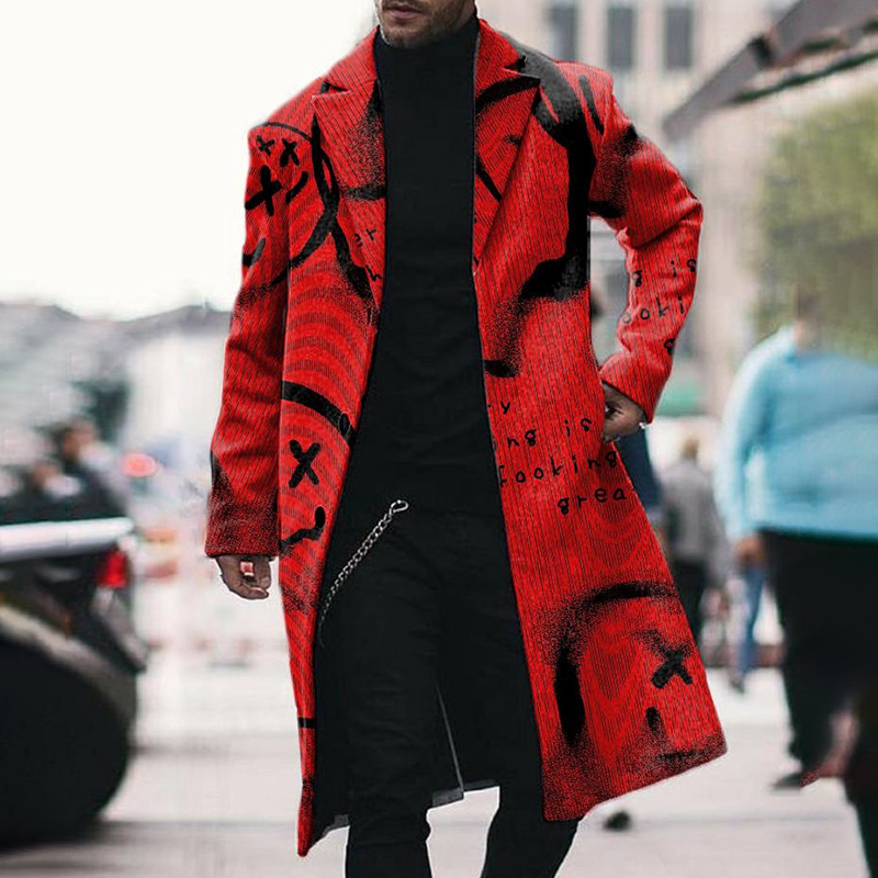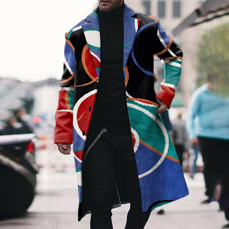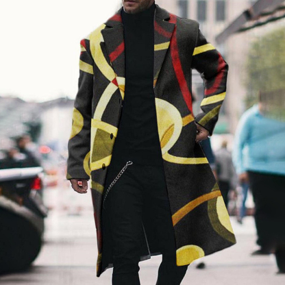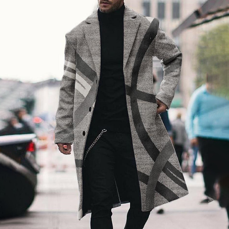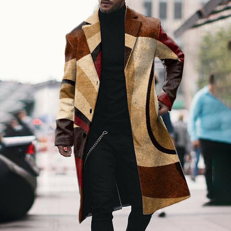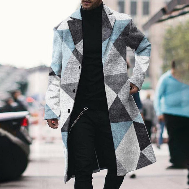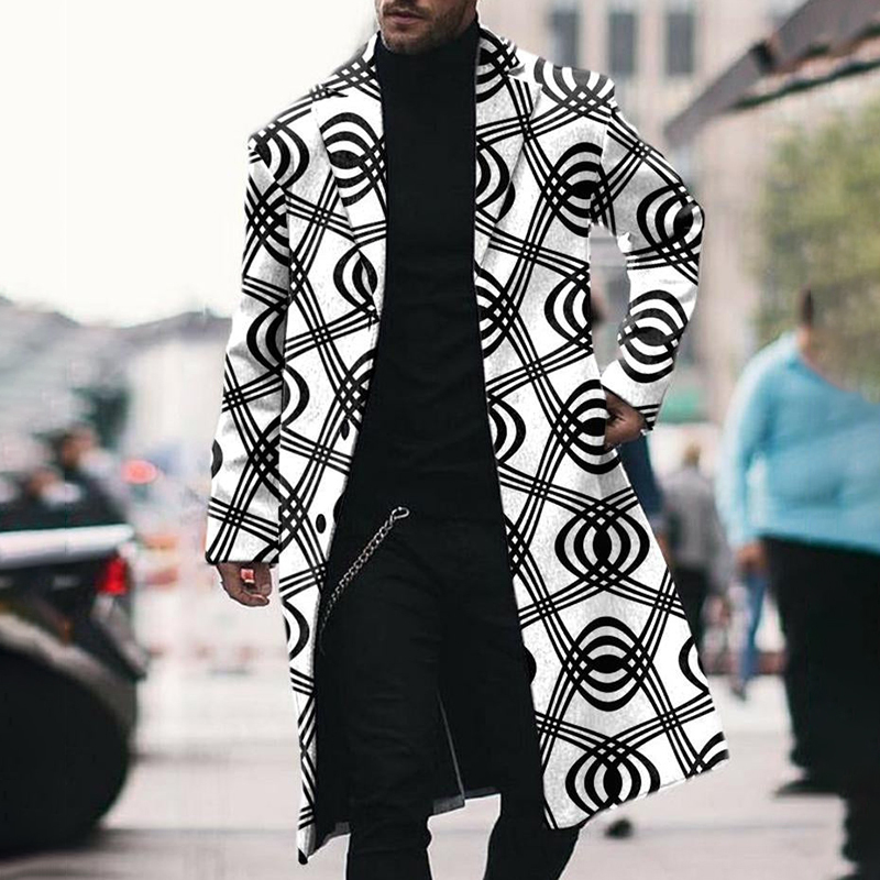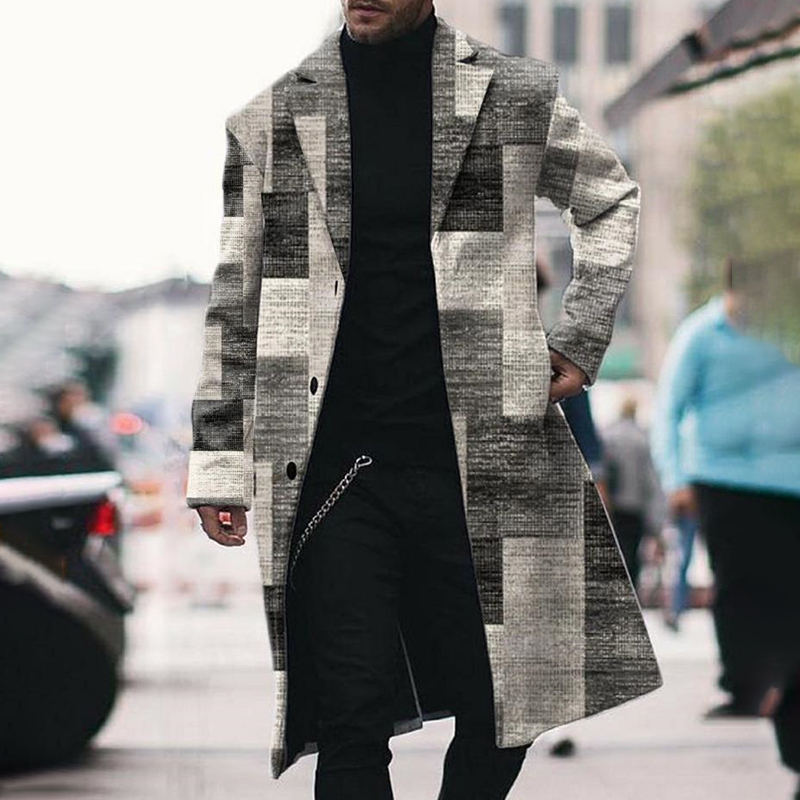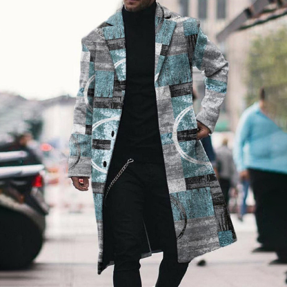 Men Graphic Prints Casual Notch Lapel Single Breasted Pockets Plaid Long Coat