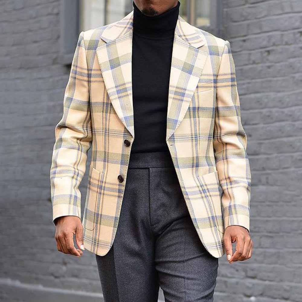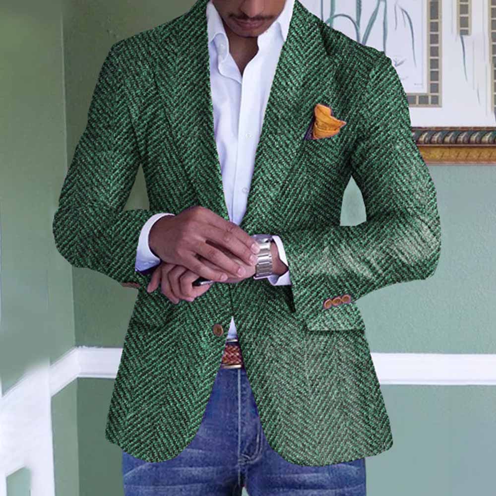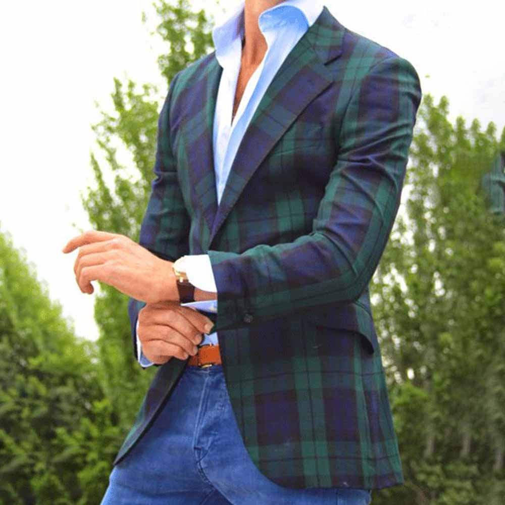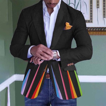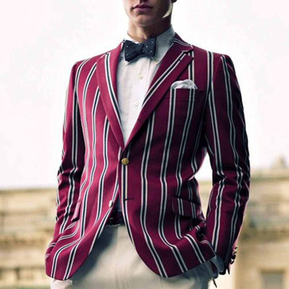 Men's Business Contrast Striped Notch Lapel Single Breasted Flap Pockets Blazer
