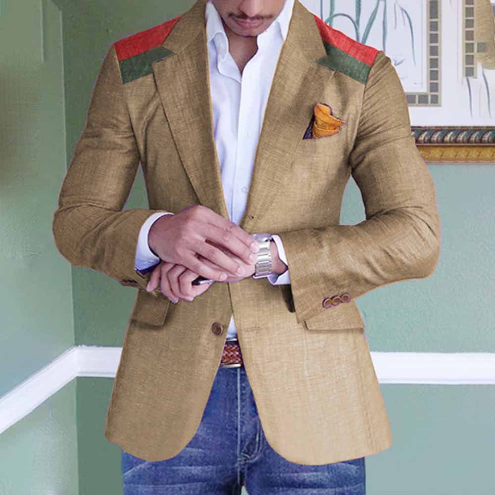 Details: Contrast Color, Long Sleeve, Single Breasted, Flap Pockets