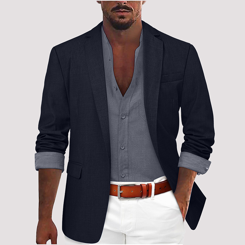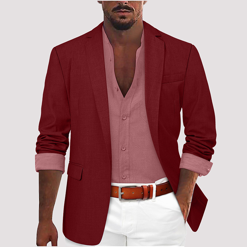 Men's Casual Lapel Collar One Button Welt Pocket Long Sleeve Solid Blazer