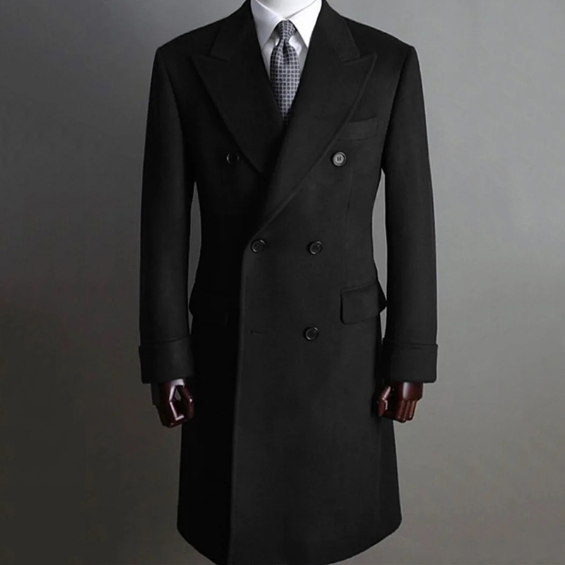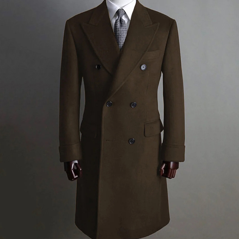 Men's Winter Coat Casual Solid Lapel Collar Double-Breasted Long Sleeve Mid-Length Woolen Coats
