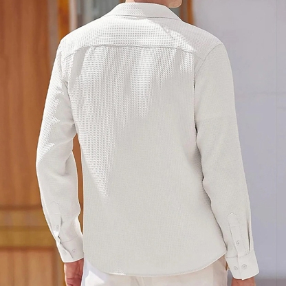 Men's Casual Solid Long Sleeve Button Loose Fit Shirt