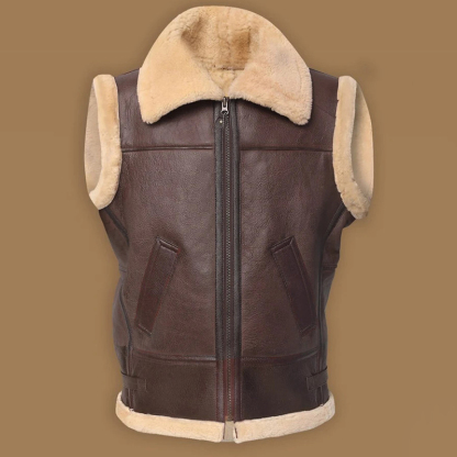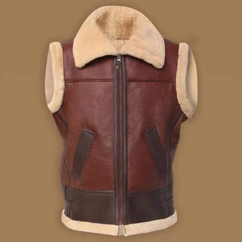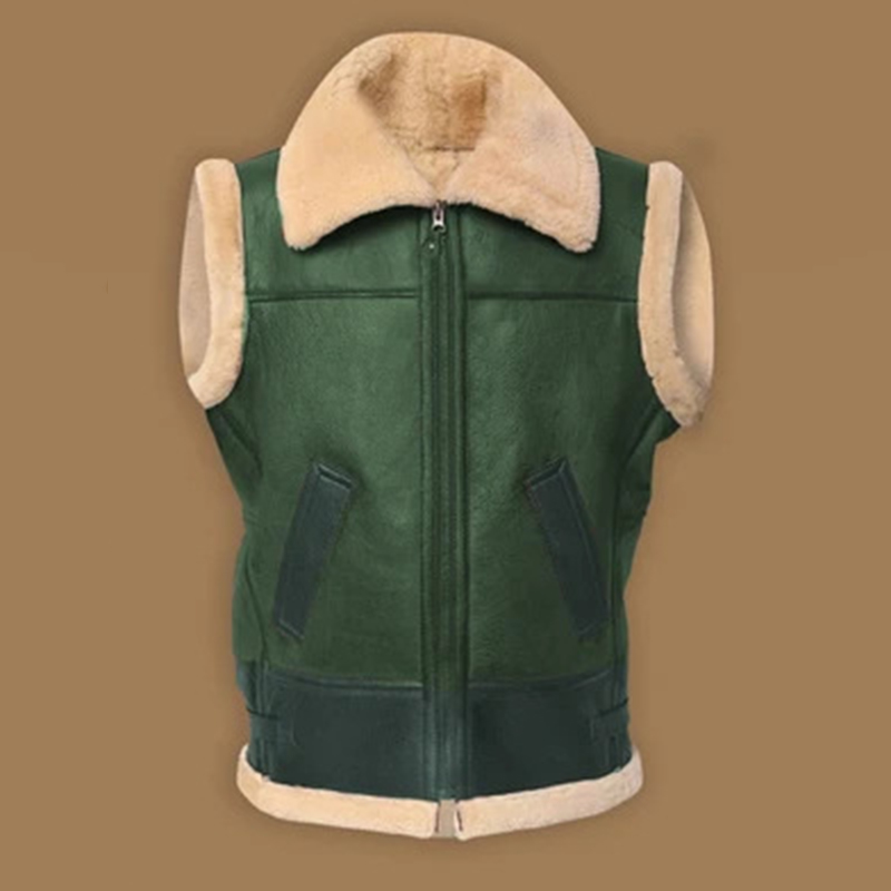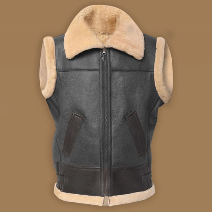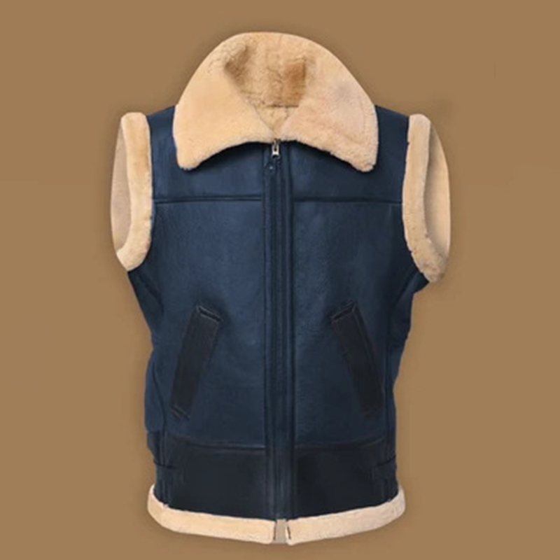 Men's Turndown Collar Thermal Fuzzy Lined Solid Zipper Sleeveless Vest Jacket