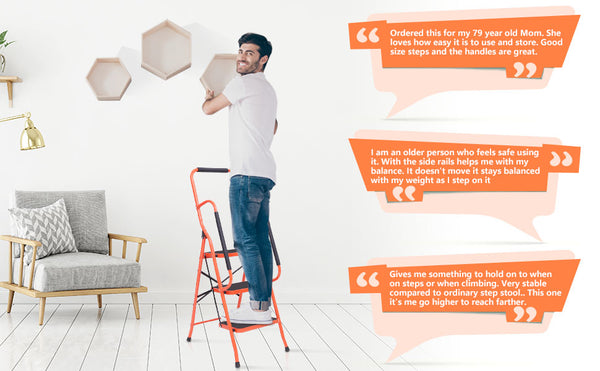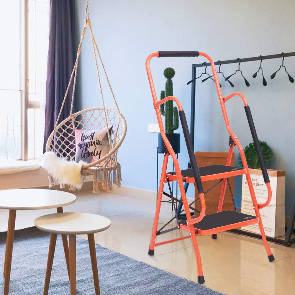 1. SAFETY HANDRAIL:Looking for a safe and comfortable stool with padded handrails on both sides? This stool has wide steps, non-marring legs, and a lightweight design for easy mobility and storage. Perfect for reaching high places at home or work!