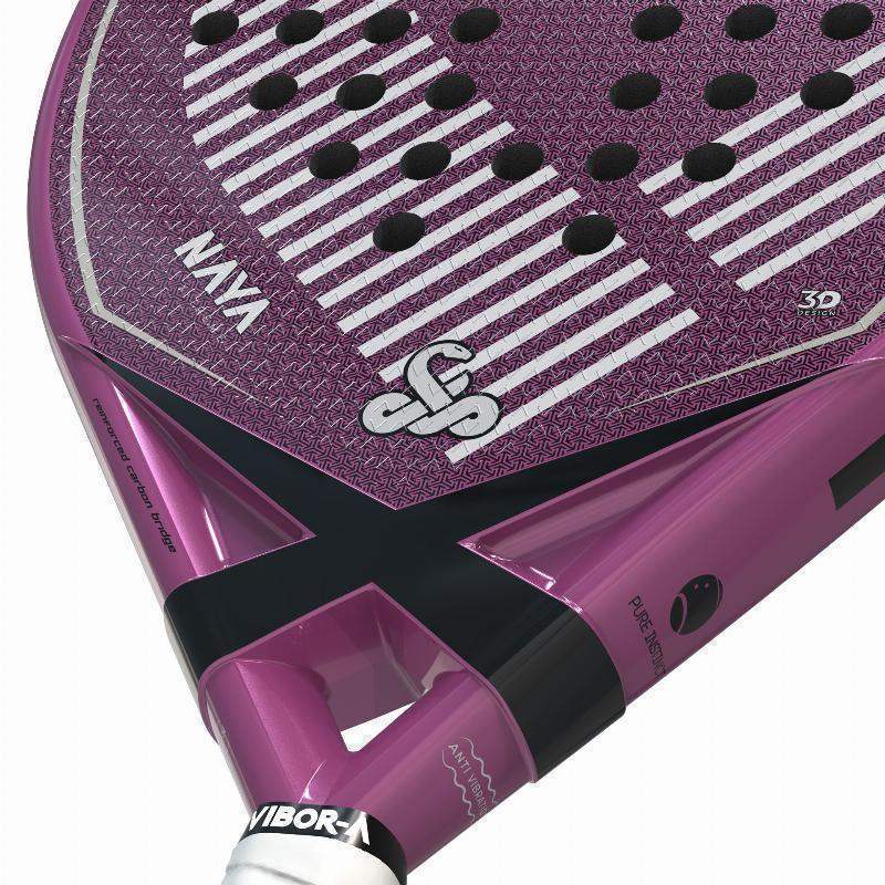The Naya Xtreme Fiber is a fuchsia racket from the Xtreme line that maintains the bridge design of the X Anniversary rackets.