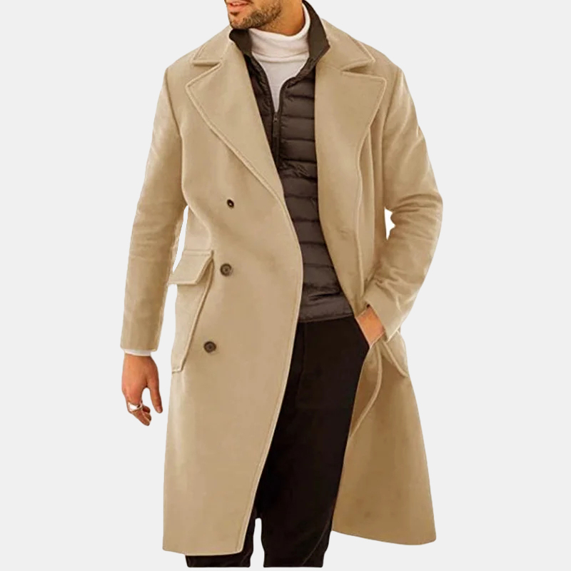 Solid Flap Pocket Notch Lapel Double Breasted Overcoat