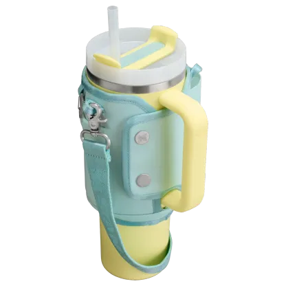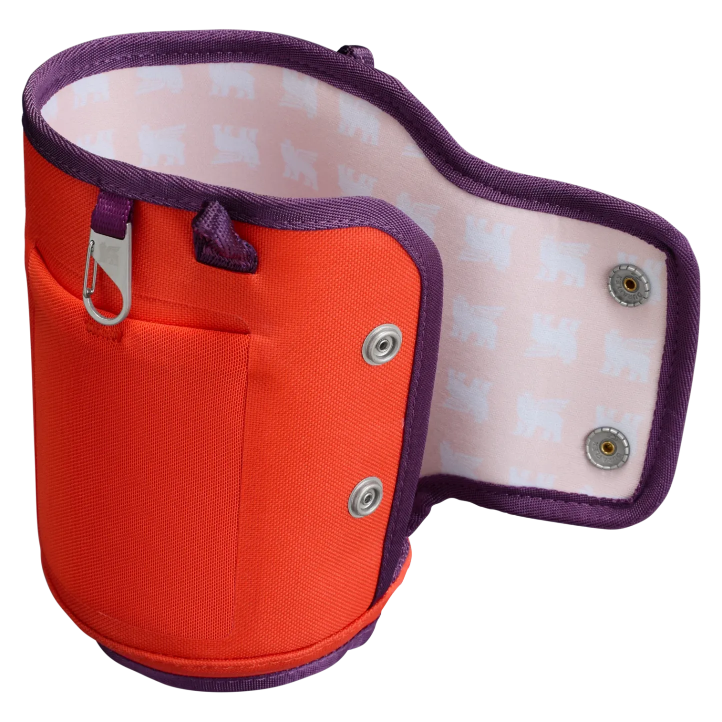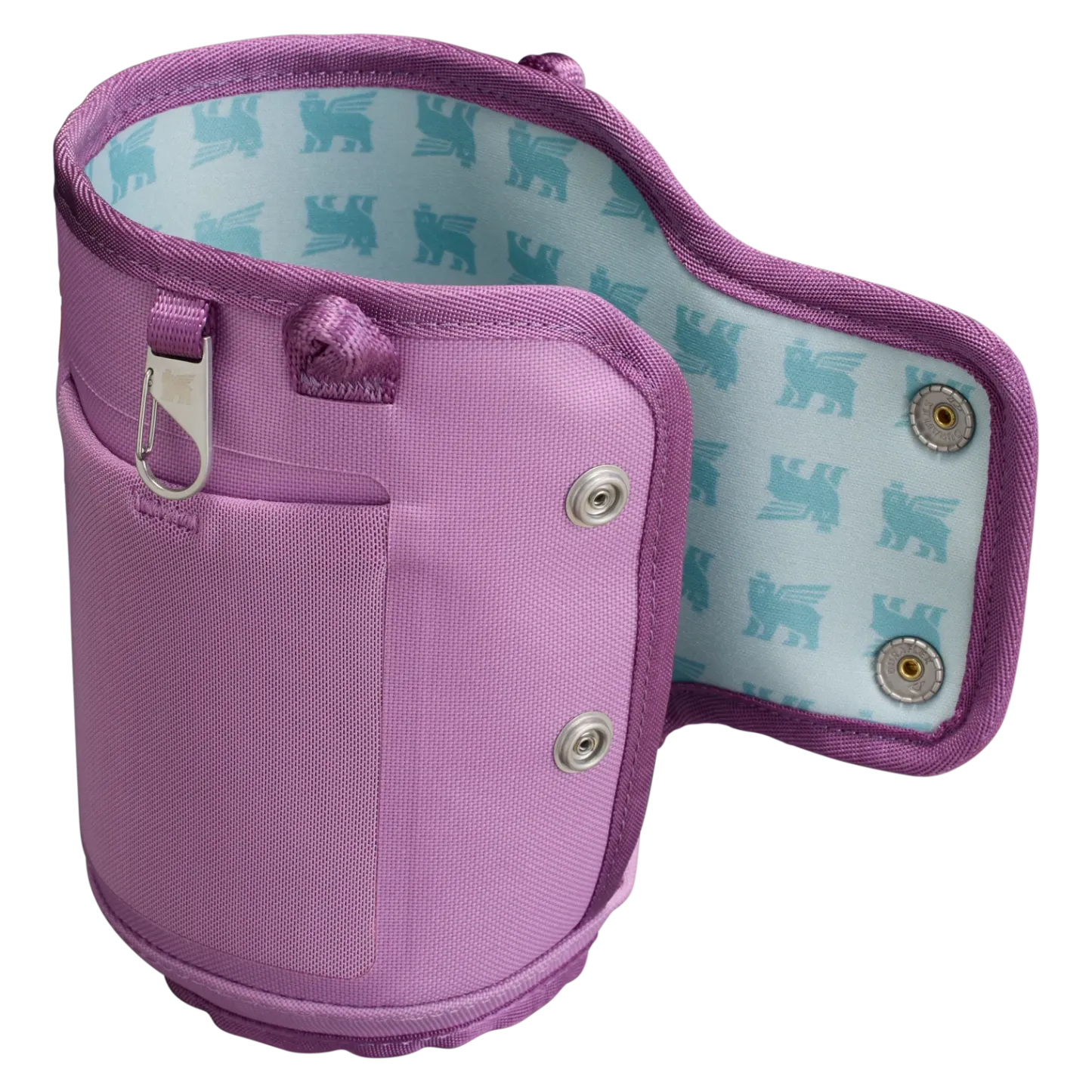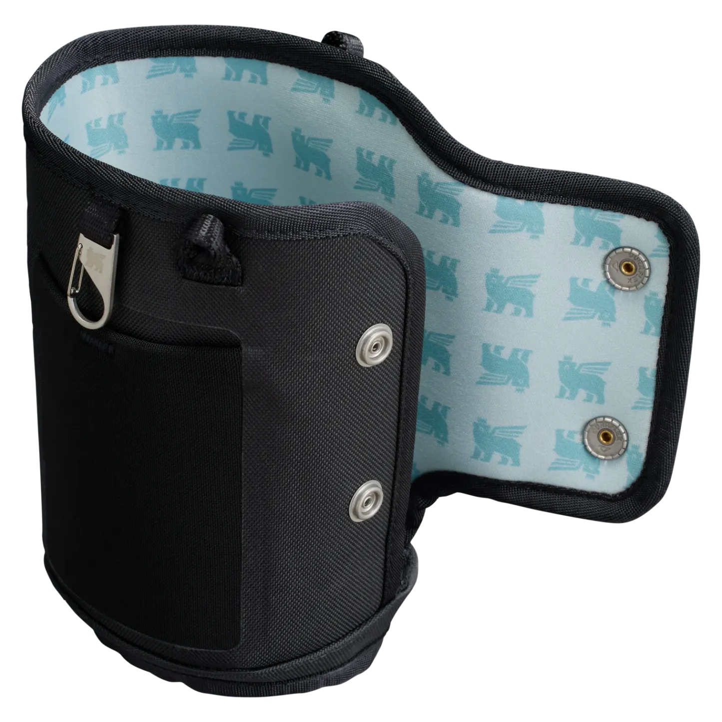 Welcome to hands-free hydration—with pockets! Made of 100% recycled polyester, style meets function in a vivid array of colors. Keep the All Day 40 oz Quencher Carry-All by your side to meet your hydration goals. Wrap the band, lined with a winged bear pattern, around your 40-ounce Quencher and secure with the double snap closure. Sling the strap across your body, hold onto your loved ones and have fun.