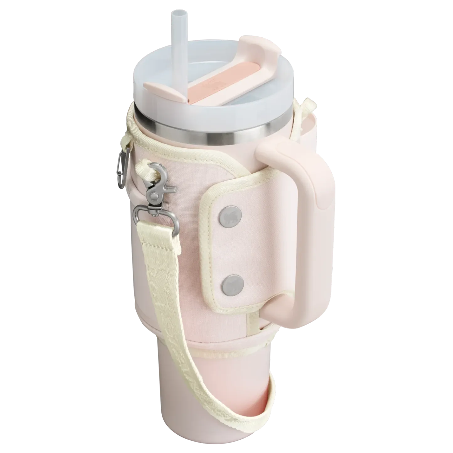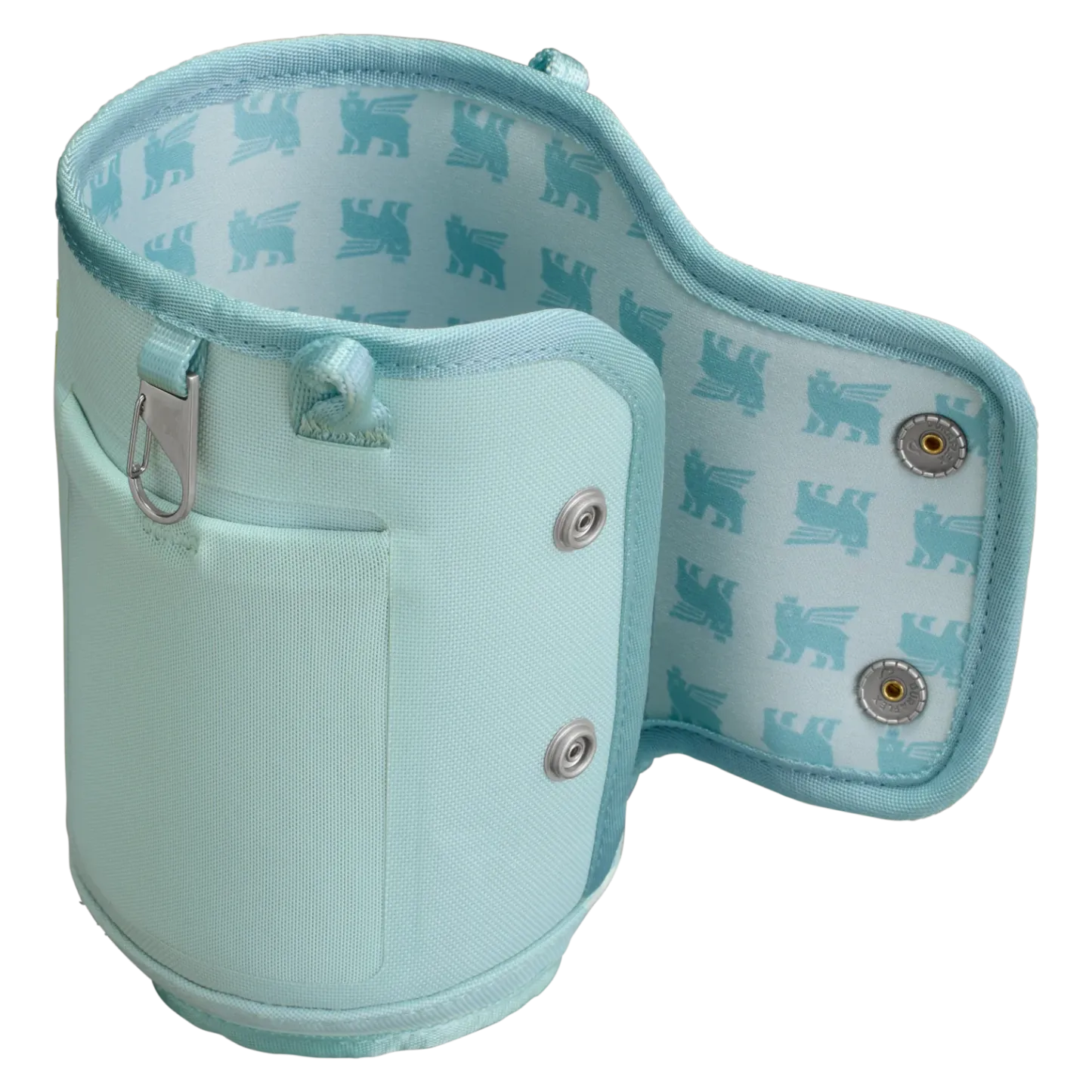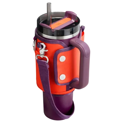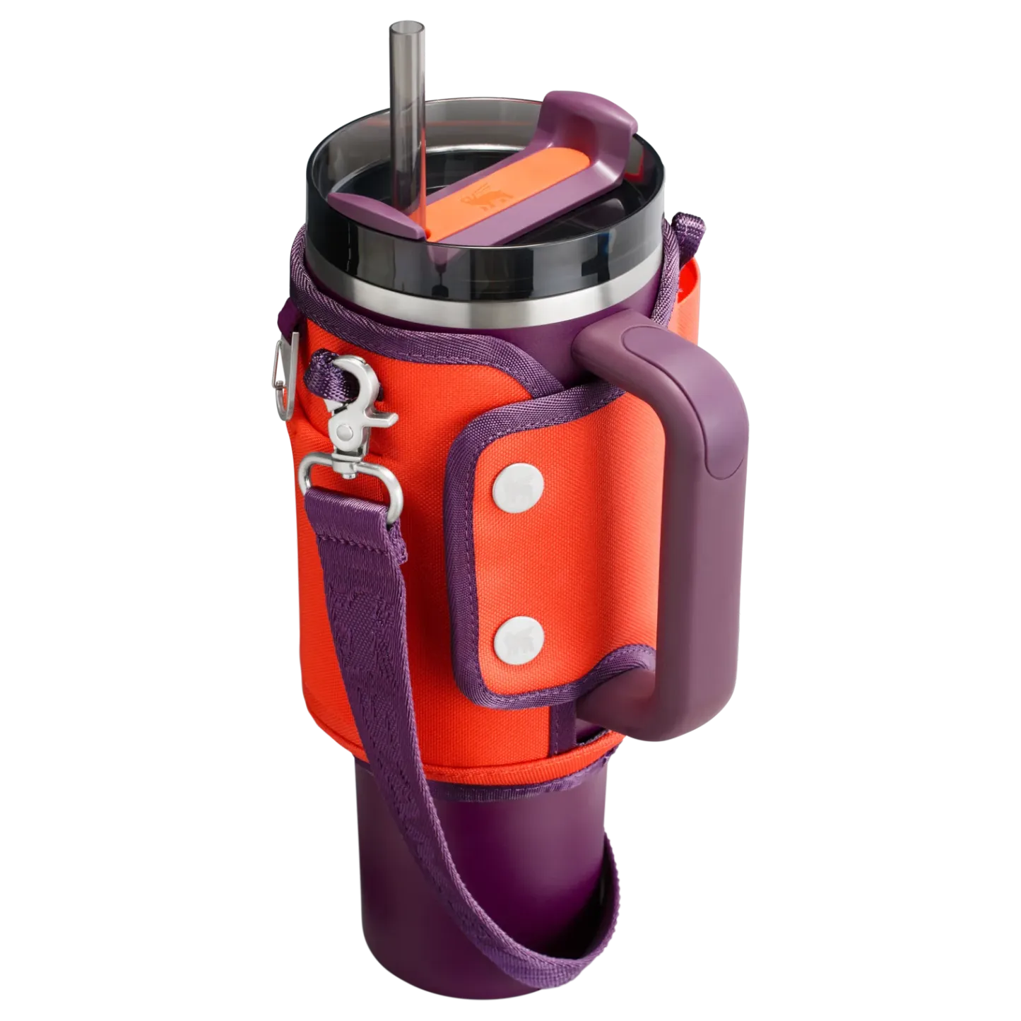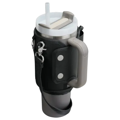 Welcome to hands-free hydration—with pockets! Made of 100% recycled polyester, style meets function in a vivid array of colors. Keep the All Day 40 oz Quencher Carry-All by your side to meet your hydration goals. Wrap the band, lined with a winged bear pattern, around your 40-ounce Quencher and secure with the double snap closure. Sling the strap across your body, hold onto your loved ones and have fun.