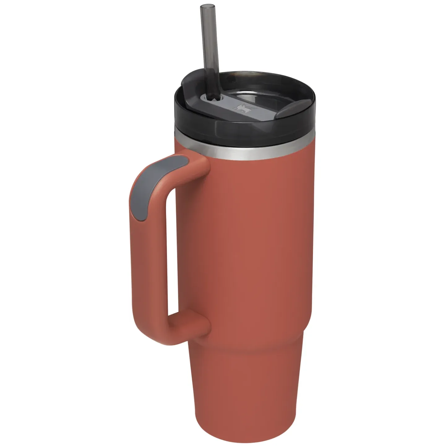 Treat yourself to trendsetting, all-day hydration with our Quencher H2.0 in Soft Matte. The grippable silicone finish offers a stylish, sophisticated look and a velvety feel. Yet it’s dishwasher safe with all the durability you count on from Stanley. Beneath the unique Soft Matte finish is recycled stainless steel construction and double-wall vacuum insulation. And at the top is an advanced FlowState�?lid, featuring a rotating cover with three positions: a straw opening designed to resist splashes with a seal that holds the reusable straw in place, a drink opening, and a full-cover top for added leak resistance. We’ve also added a comfort-grip handle, so you can easily carry your water, iced coffee or beverage of choice to work, on errands or daytrips. The narrow base is made to fit nearly any car cup holder.