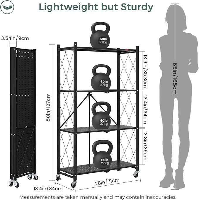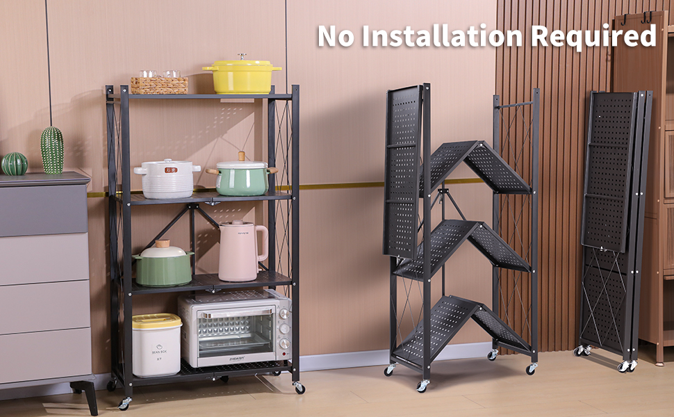 - Installation-free, folds in 5 seconds, easily bears 1000 lbs without casters.