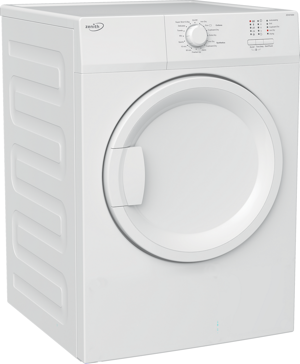 The freestanding Zenith ZDVS700W is a vented dryer with a 7kg capacity. It is available in a clean, white finish to suit any kitchen or utility room, and comes with a range of 15 pre-prepared settings to suit all your drying needs.